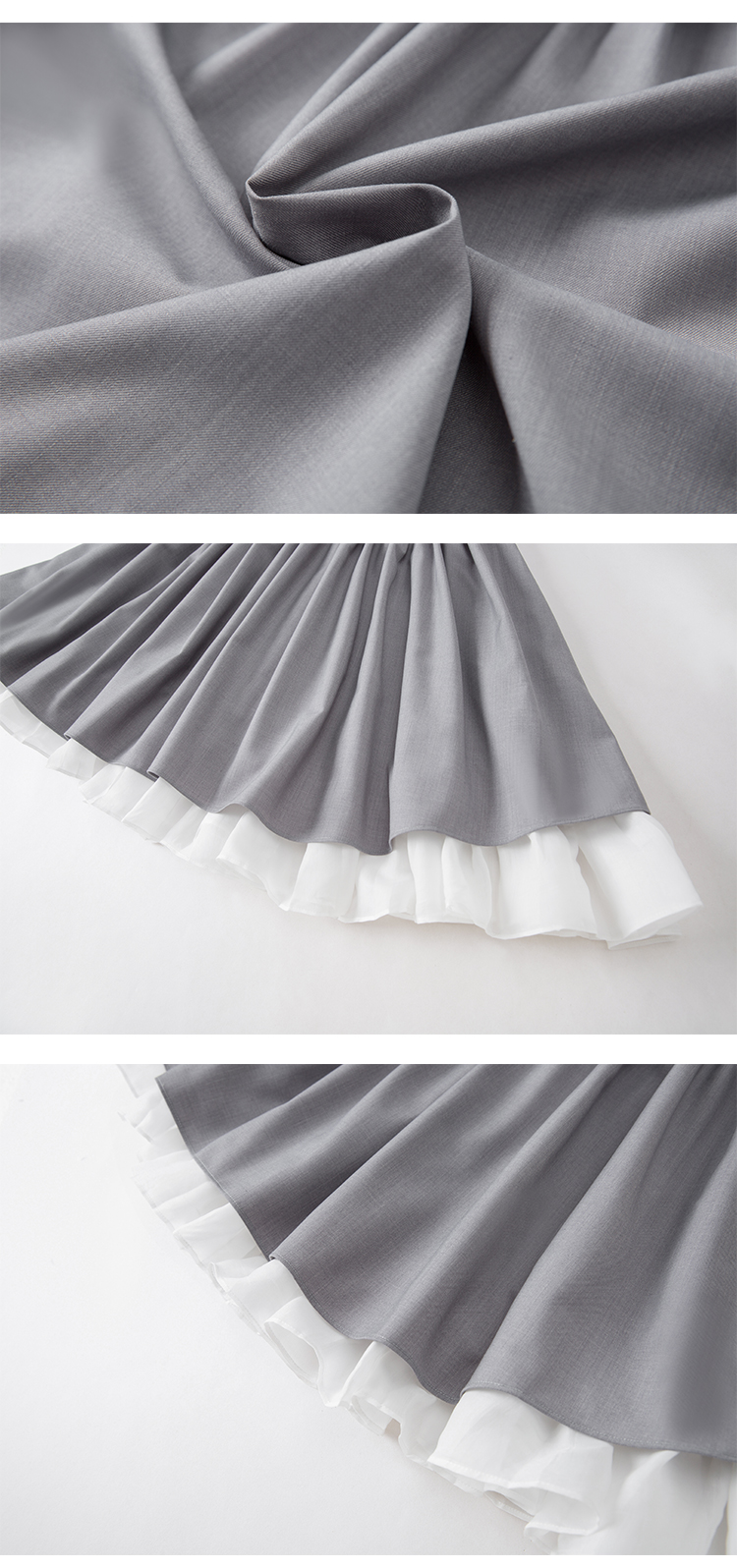 DIDDI MODA學院風短袖連衣裙低腰壓褶灰色短裙