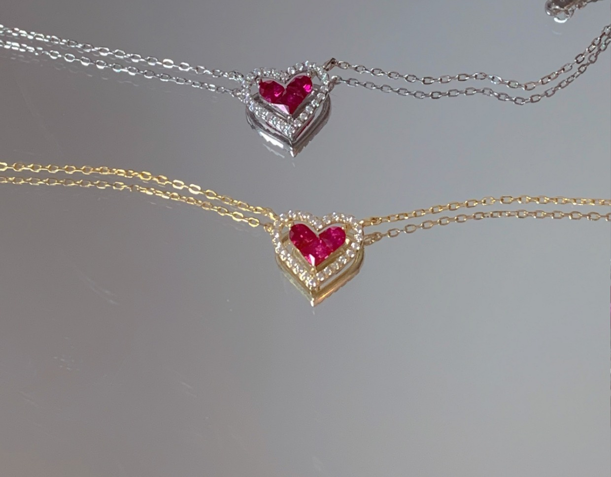 「甜美學姐」粉色愛心925純銀項鏈新款女氣質鎖骨鏈頸情人節禮物