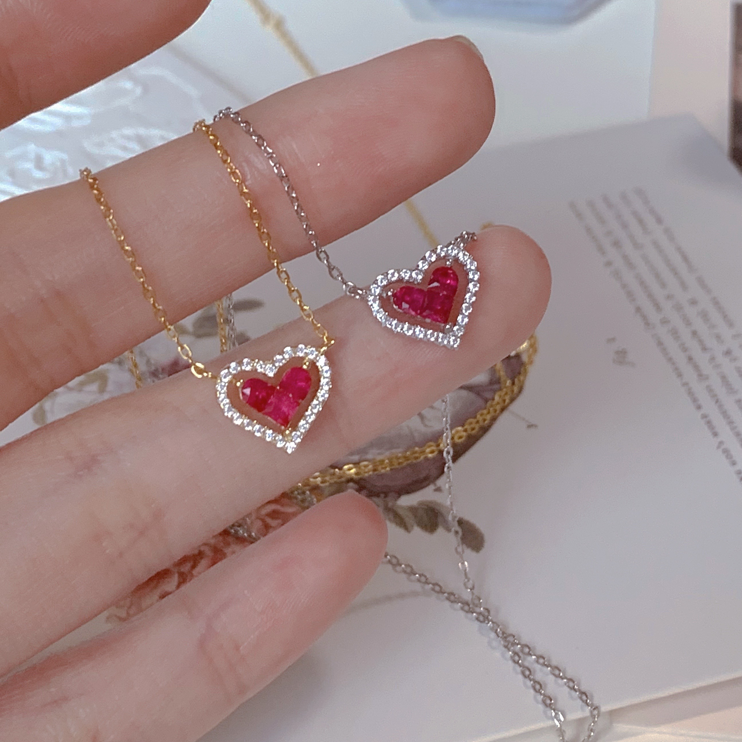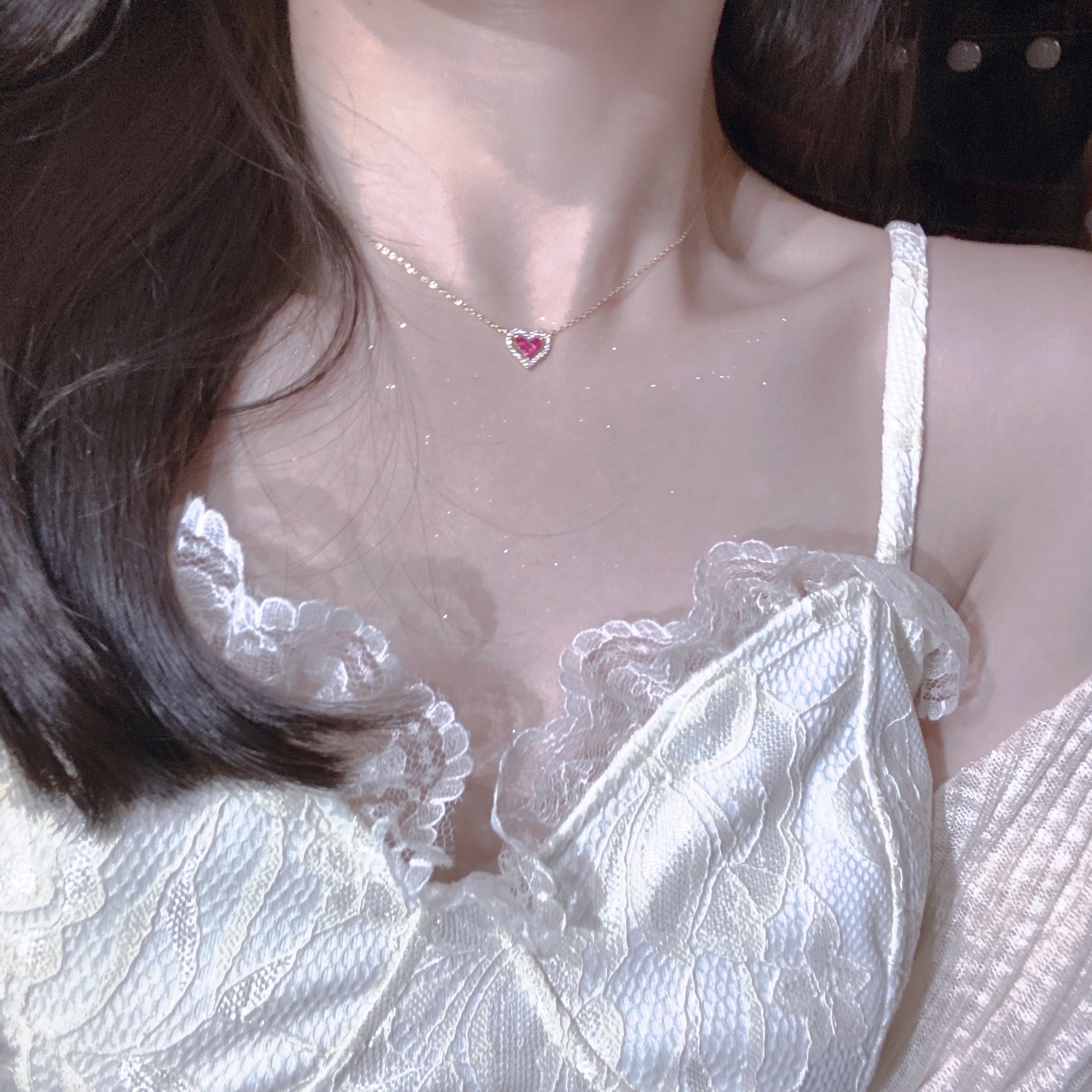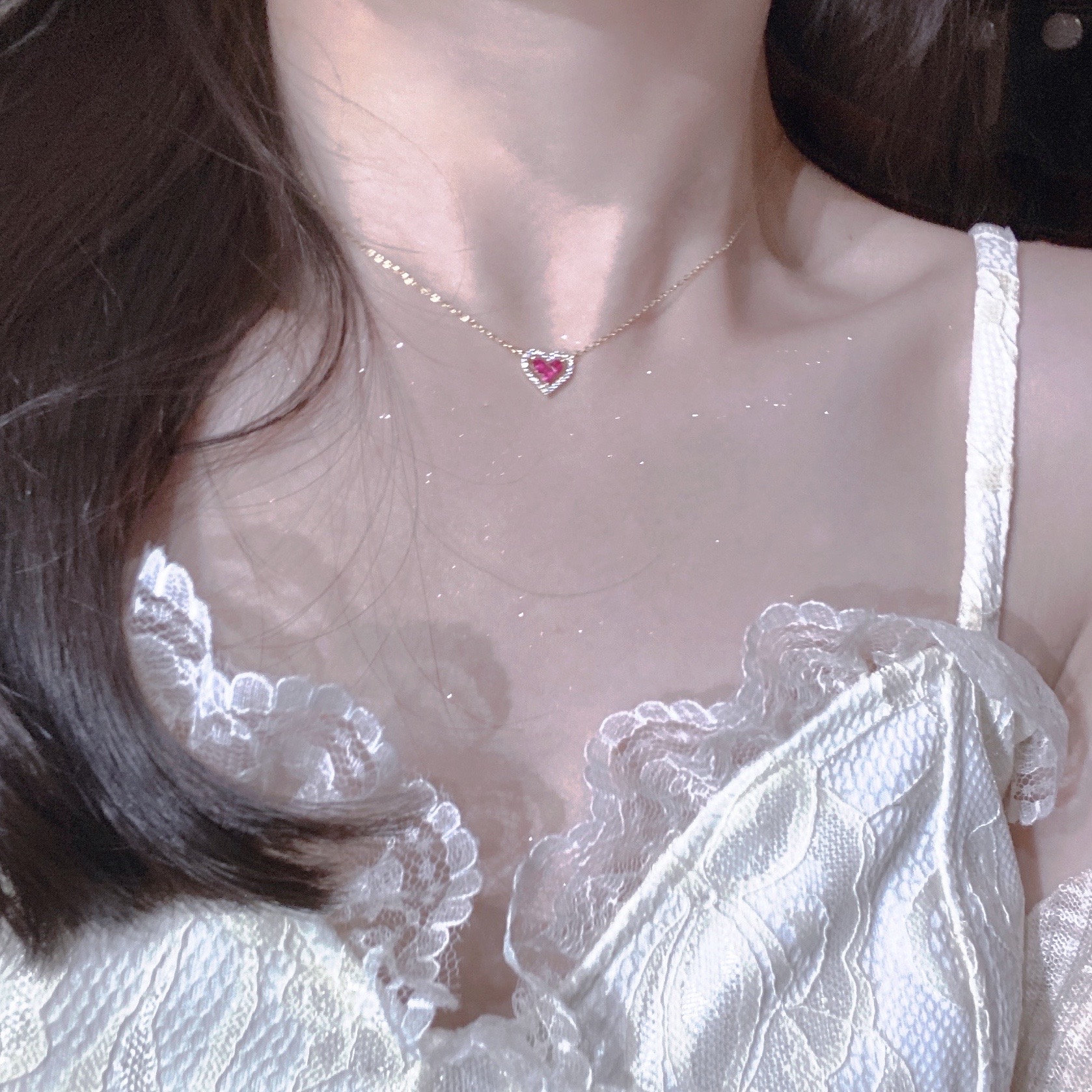 「想念」顯白小紅心純銀項鏈鎖骨鏈細夏天小眾輕奢頸鏈送女友飾品