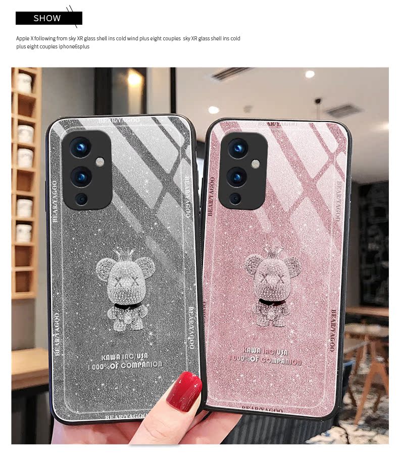 鉆石皇冠熊一加9手機殼新款1+8pro適用oneplus保護套網紅9r潮牌8t高端男女7tpro七八九tpor玻璃硅膠por防摔5g