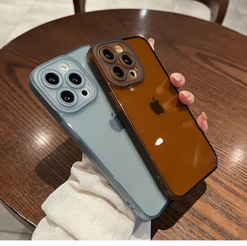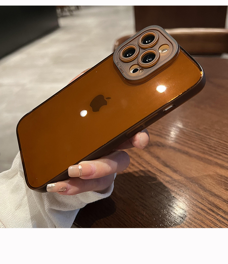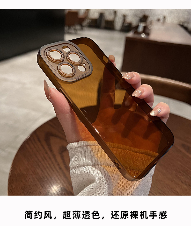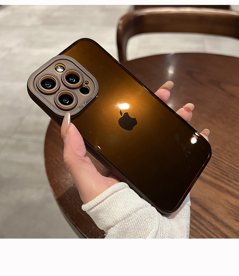 棕色透明殼創意蘋果14promax感鏡頭