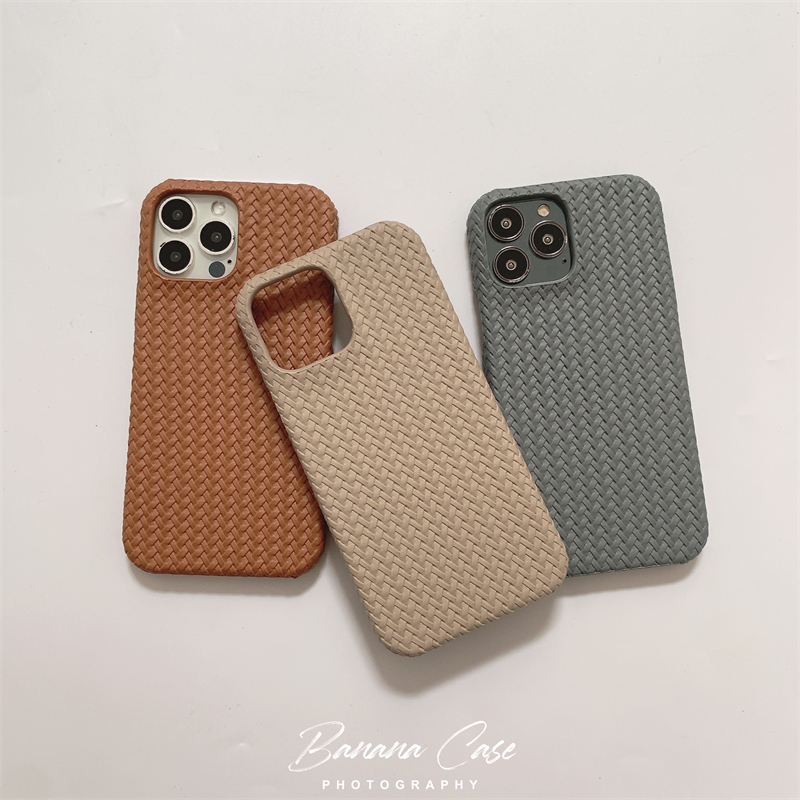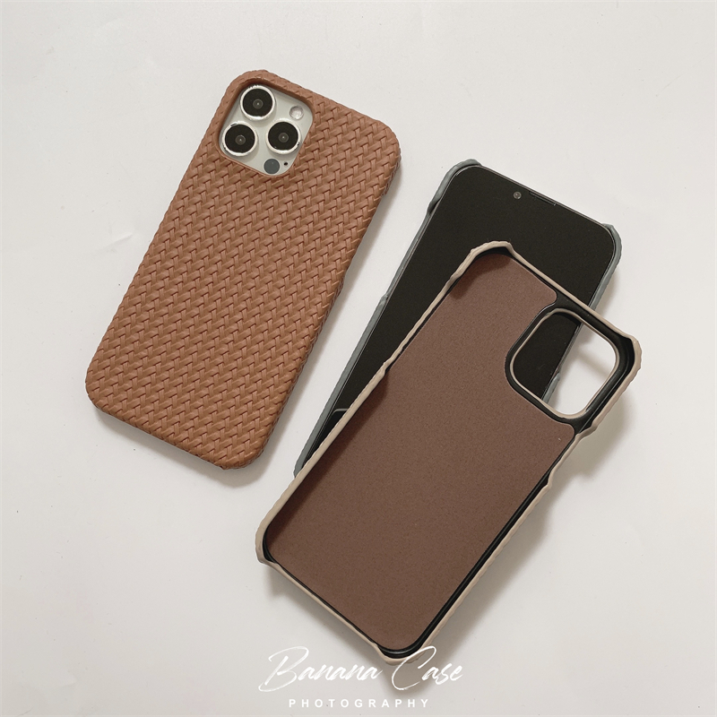 高定復古編織紋皮質適用蘋果12pro/13ProMax手機殼iPhone14promax潮11半包硬殼
