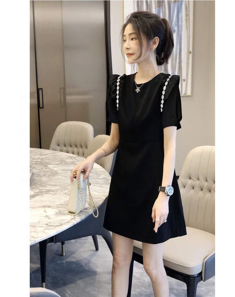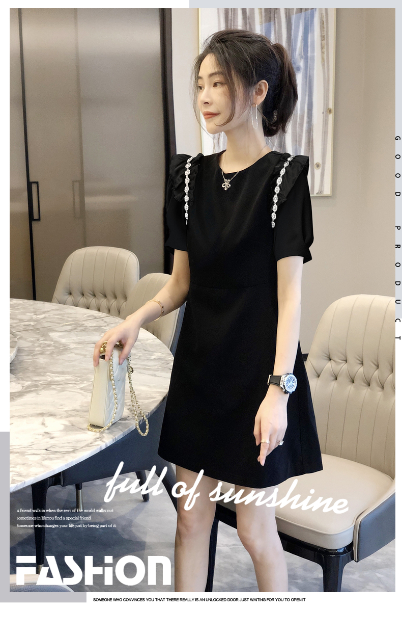 黑色法式小香風連衣裙女氣質小個子質感高級感2023年夏季新款歐貨