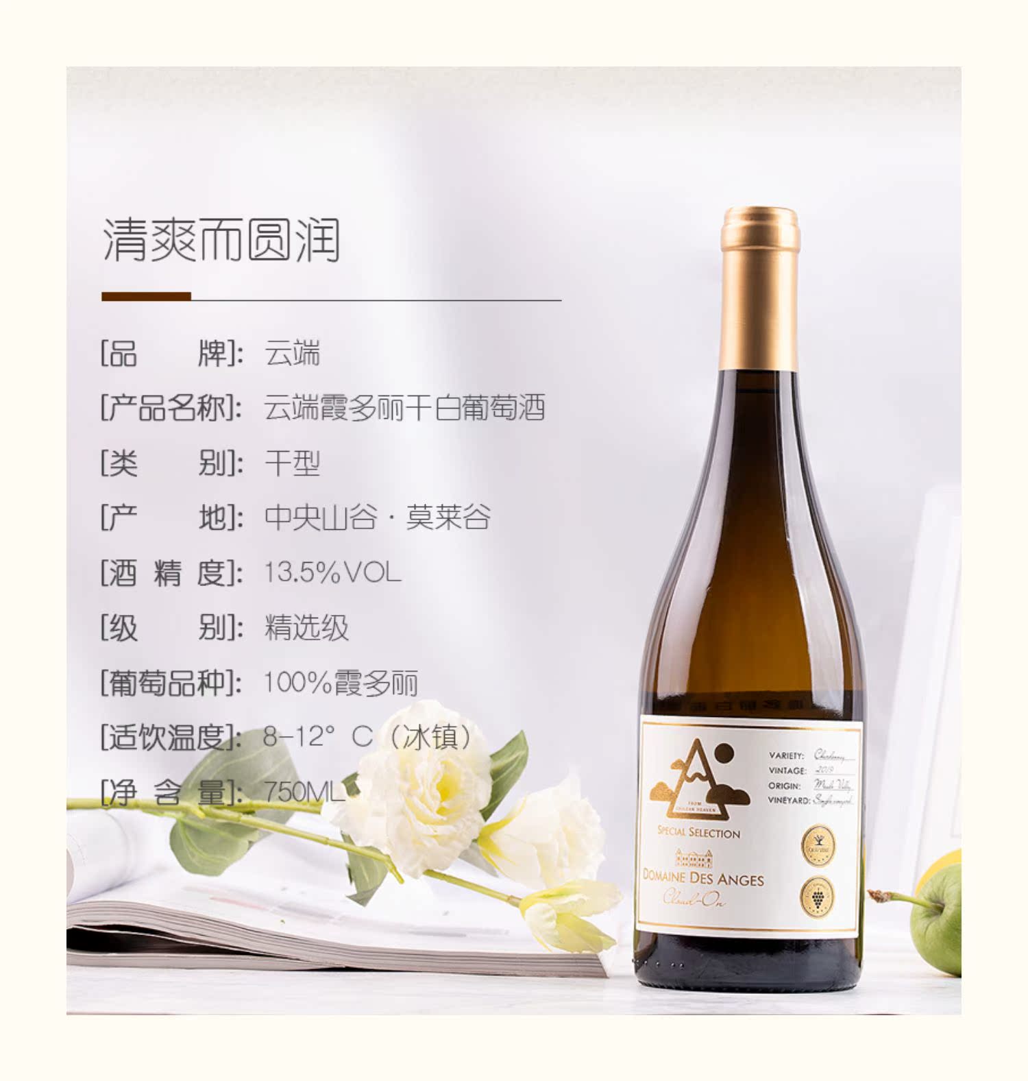 酒云網智利原瓶進口富麗安白葡萄酒
