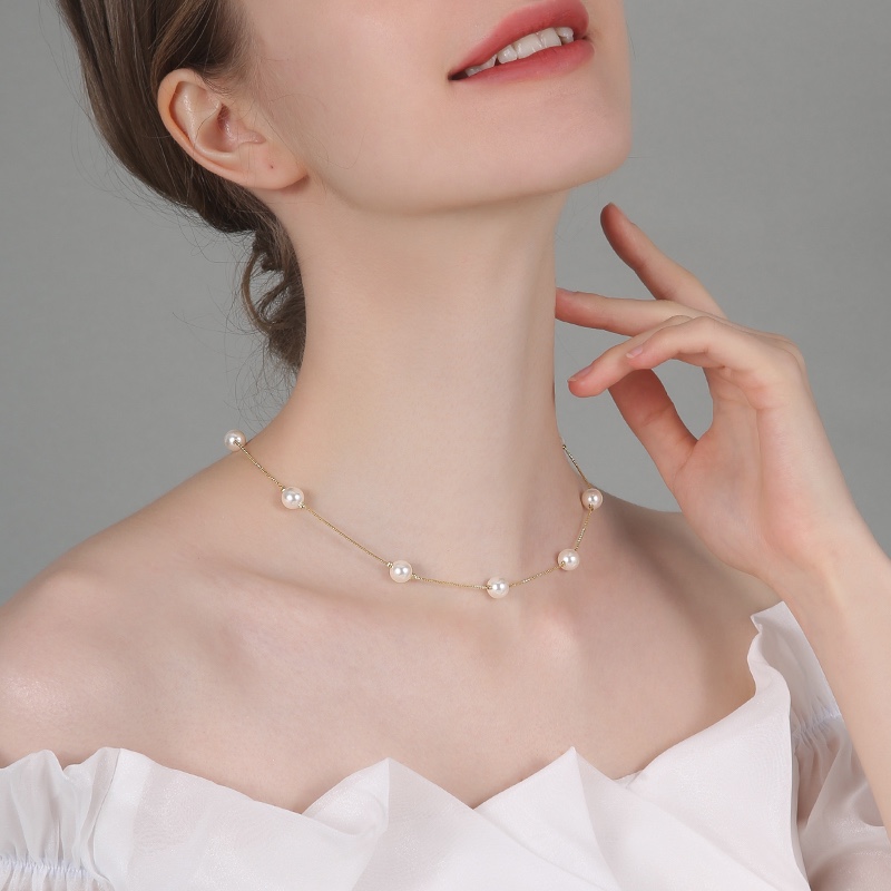 滿天星天然淡水珍珠925銀鎖骨鏈