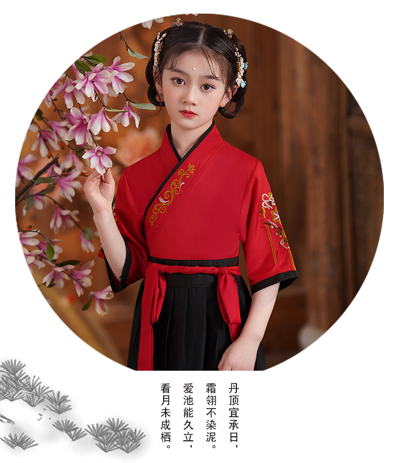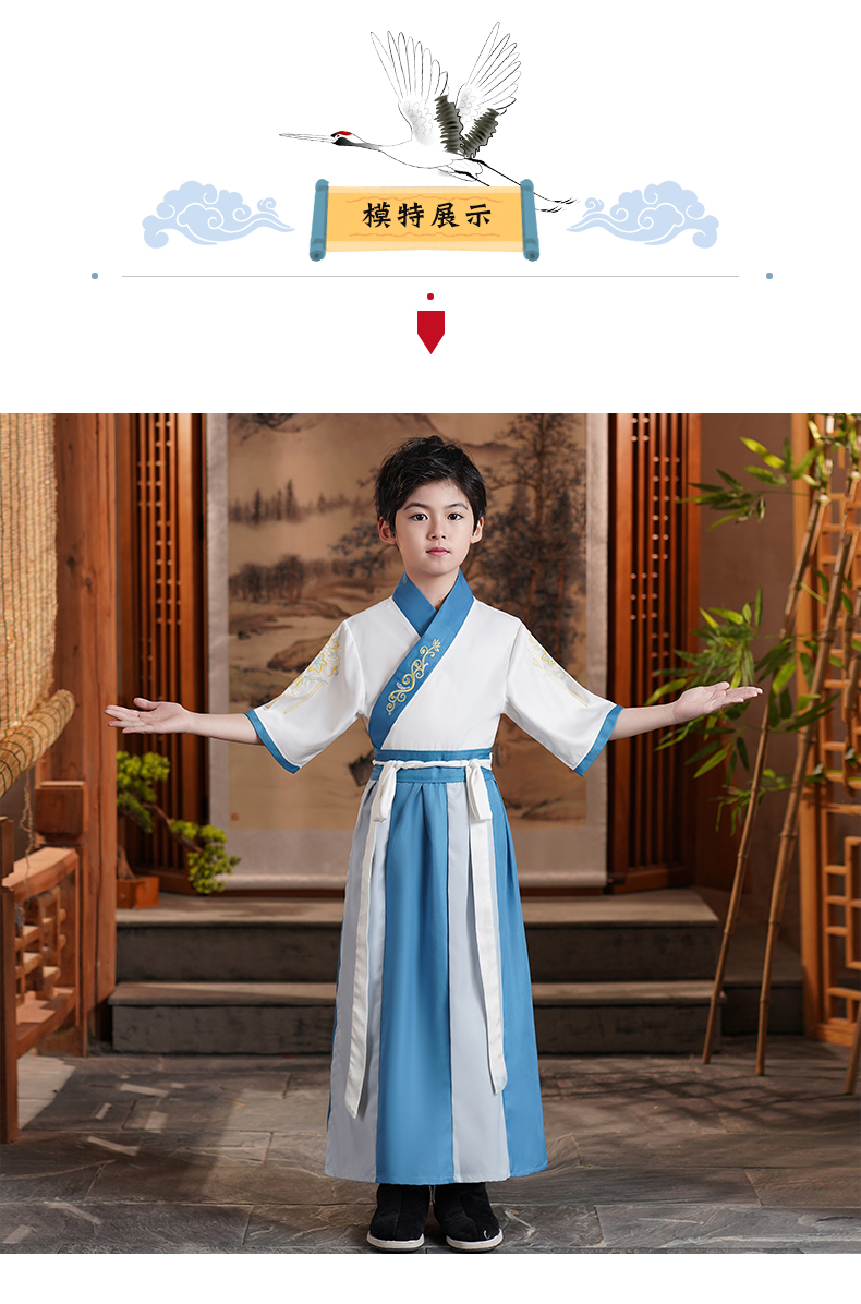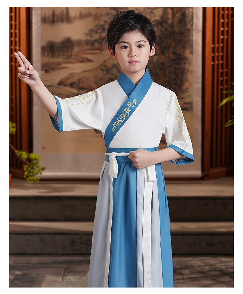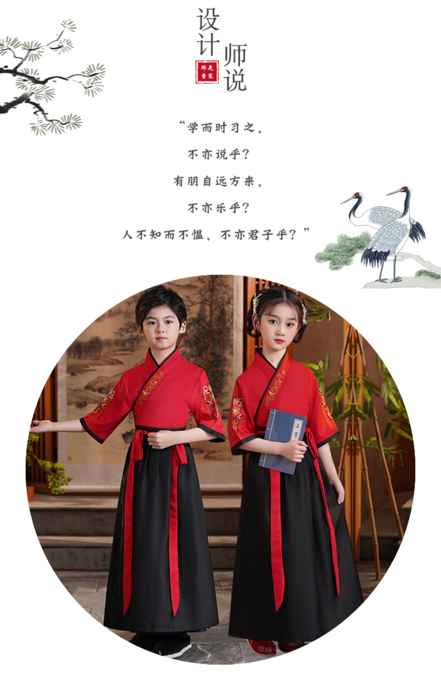 兒童古裝漢服國學男童短袖服裝小學生書童男女童夏季中國風演出服