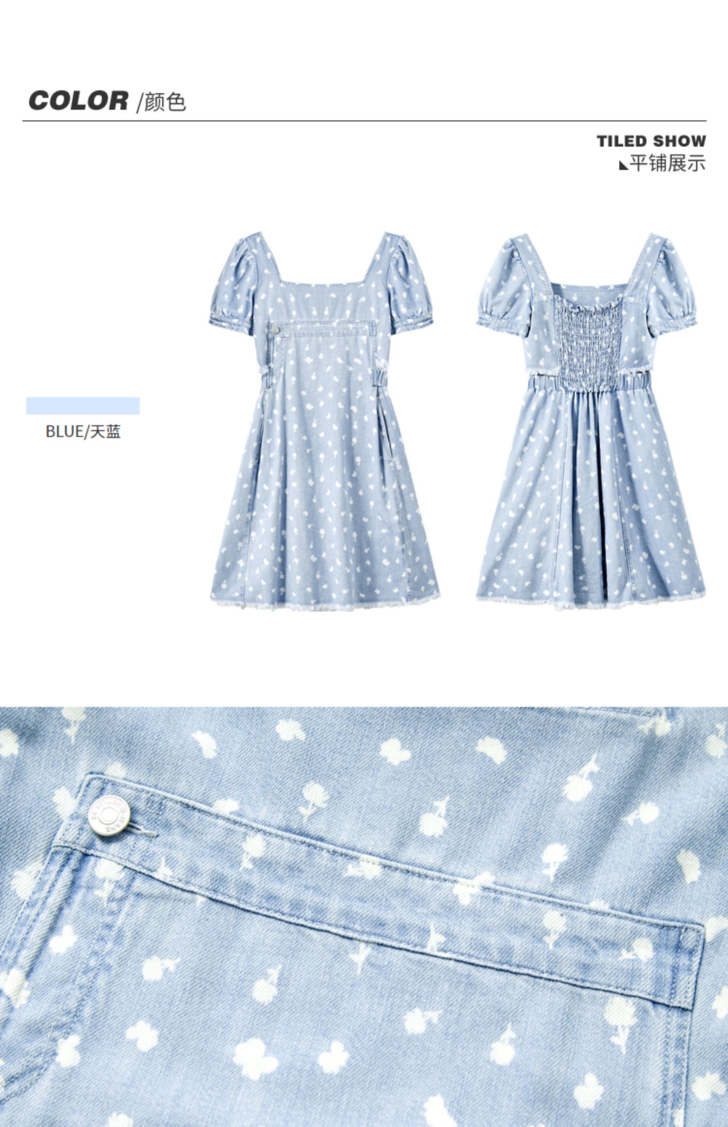 A21女裝牛仔連衣裙女2023春秋新款時尚短款泡泡短袖設計感裙子