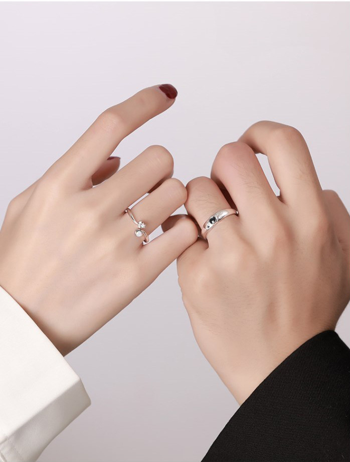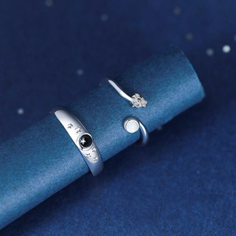 星河萬里情侶戒指時尚潮流滴膠開口指環情人節禮物月光石星球對戒