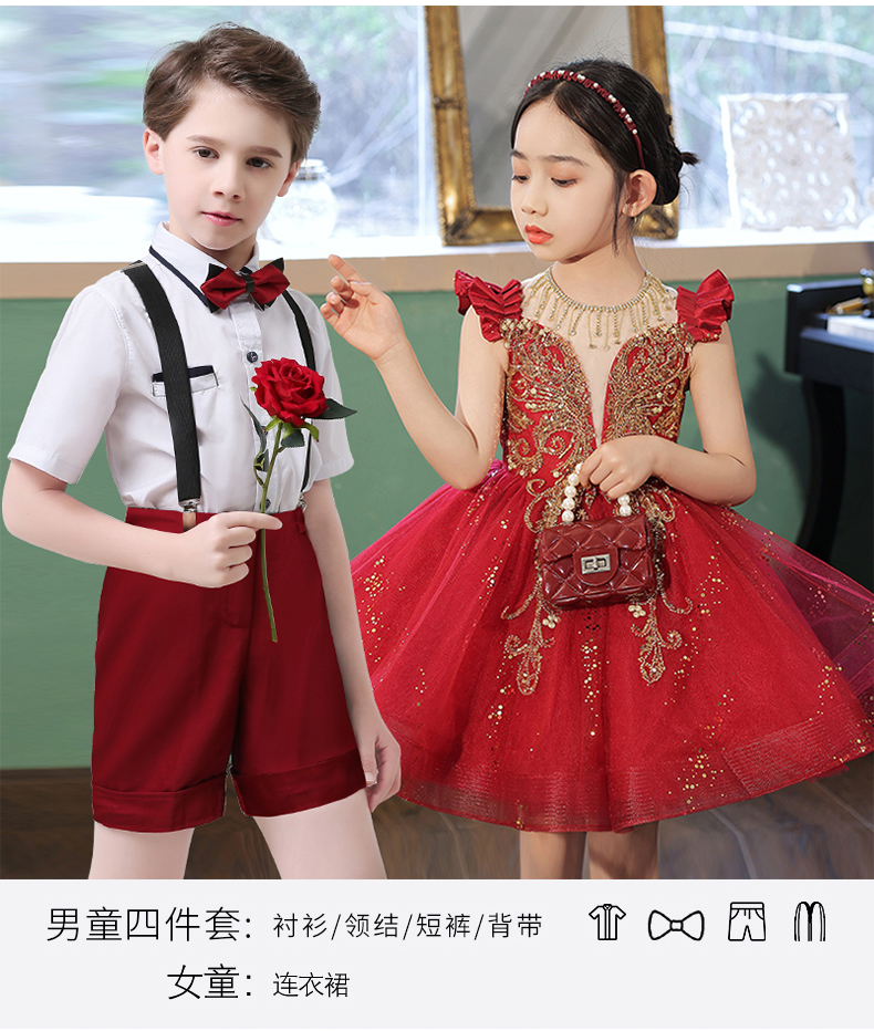 兒童合唱服演出服中小學生鋼琴比賽朗誦禮服套裝紅色幼兒園表演服