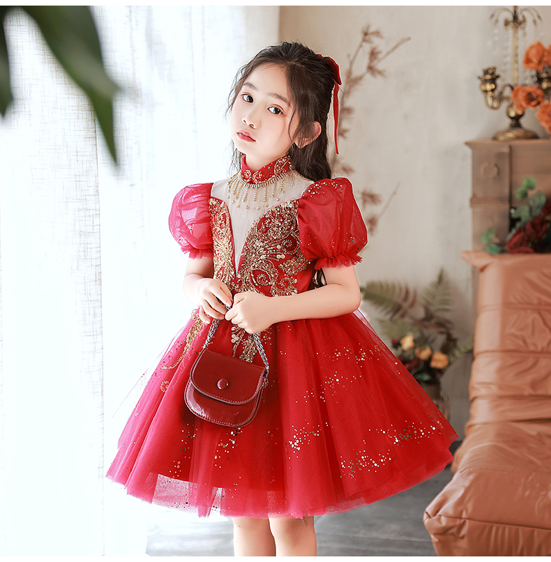 兒童演出服蓬蓬裙女童舞蹈紗裙小學生紅歌比賽大合唱服裝朗誦表演