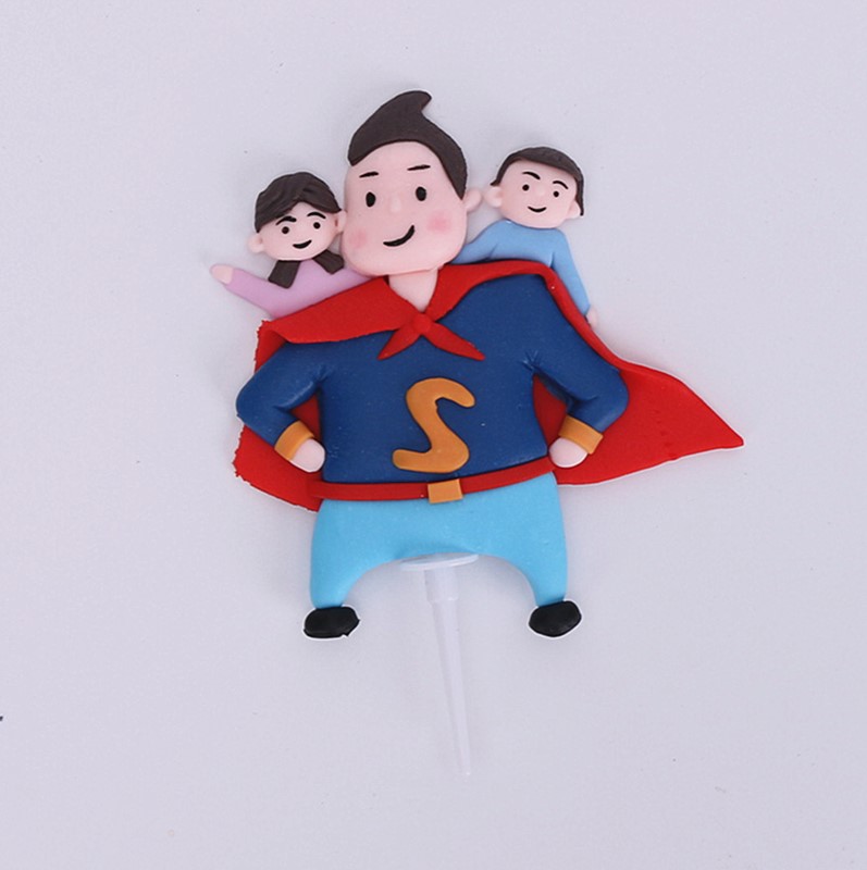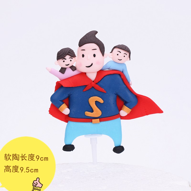 六一兒童節男孩女孩超人爸爸軟陶蛋糕擺件生日快樂父親節裝飾插牌