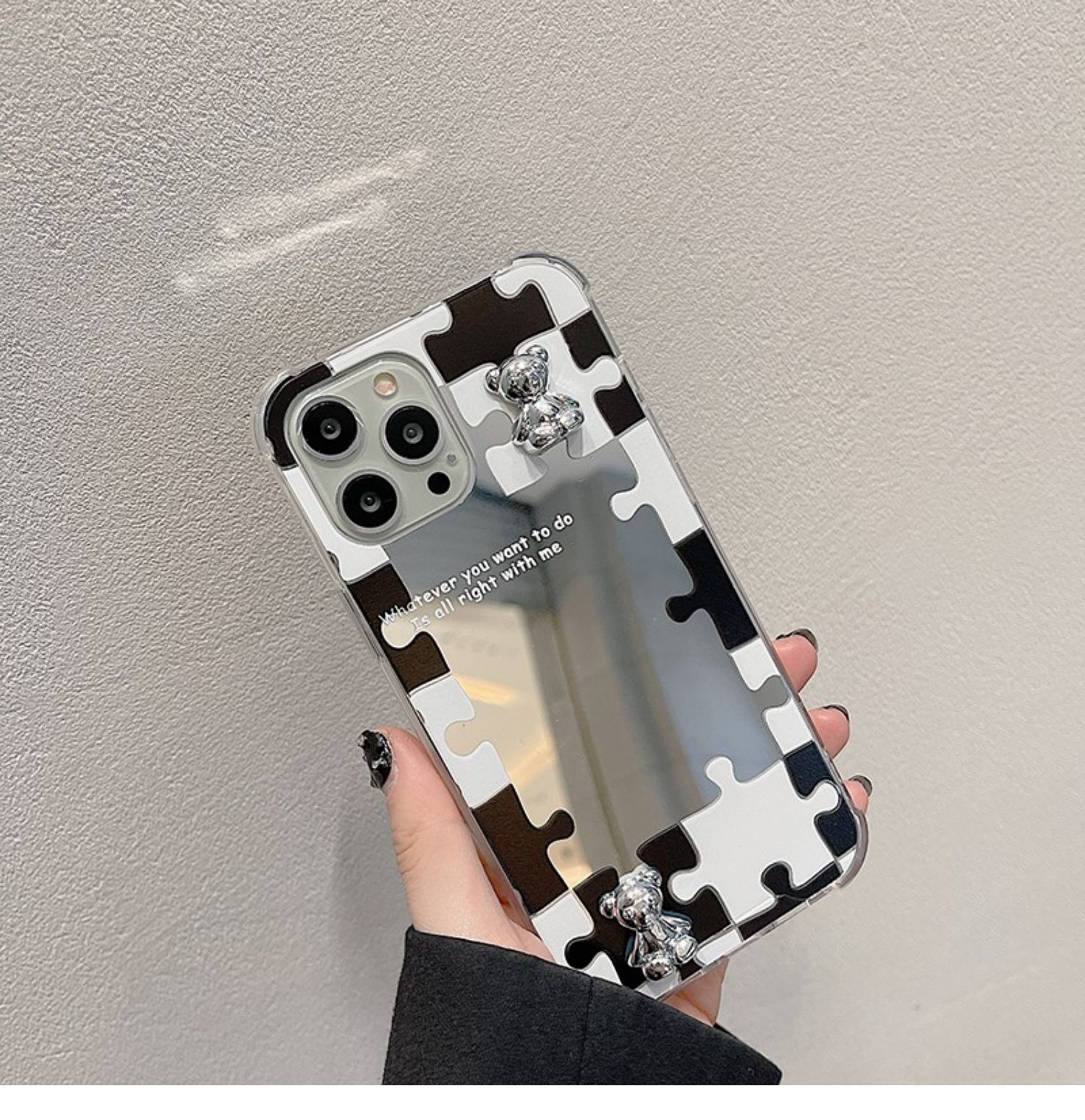 拼圖鏡面立體電鍍小熊華為榮耀60pro手機殼50se新款30pro日韓卡通v40輕奢暢玩20pro全包防摔x30i女潮9x硅膠套