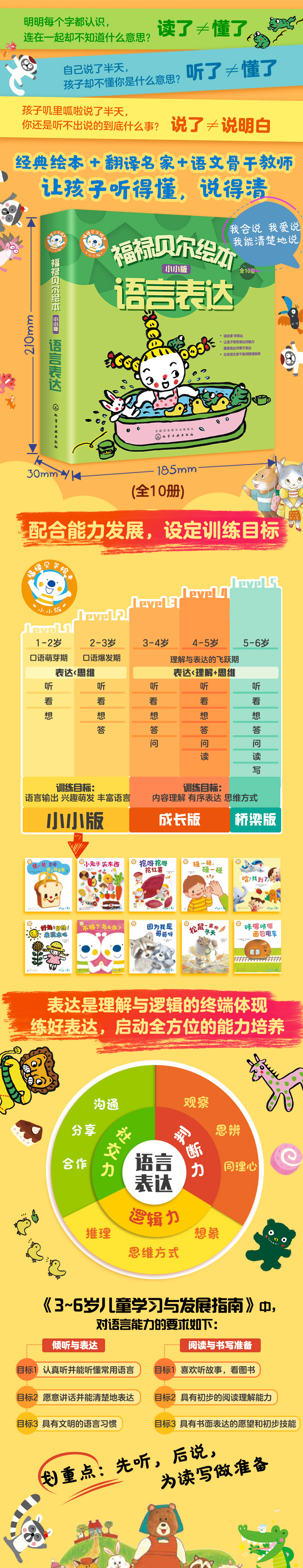 當當網正版童書 福祿貝爾繪本語言表達0-3歲小小版全10冊入園前鼓勵開口說話完整表達含拓展練習