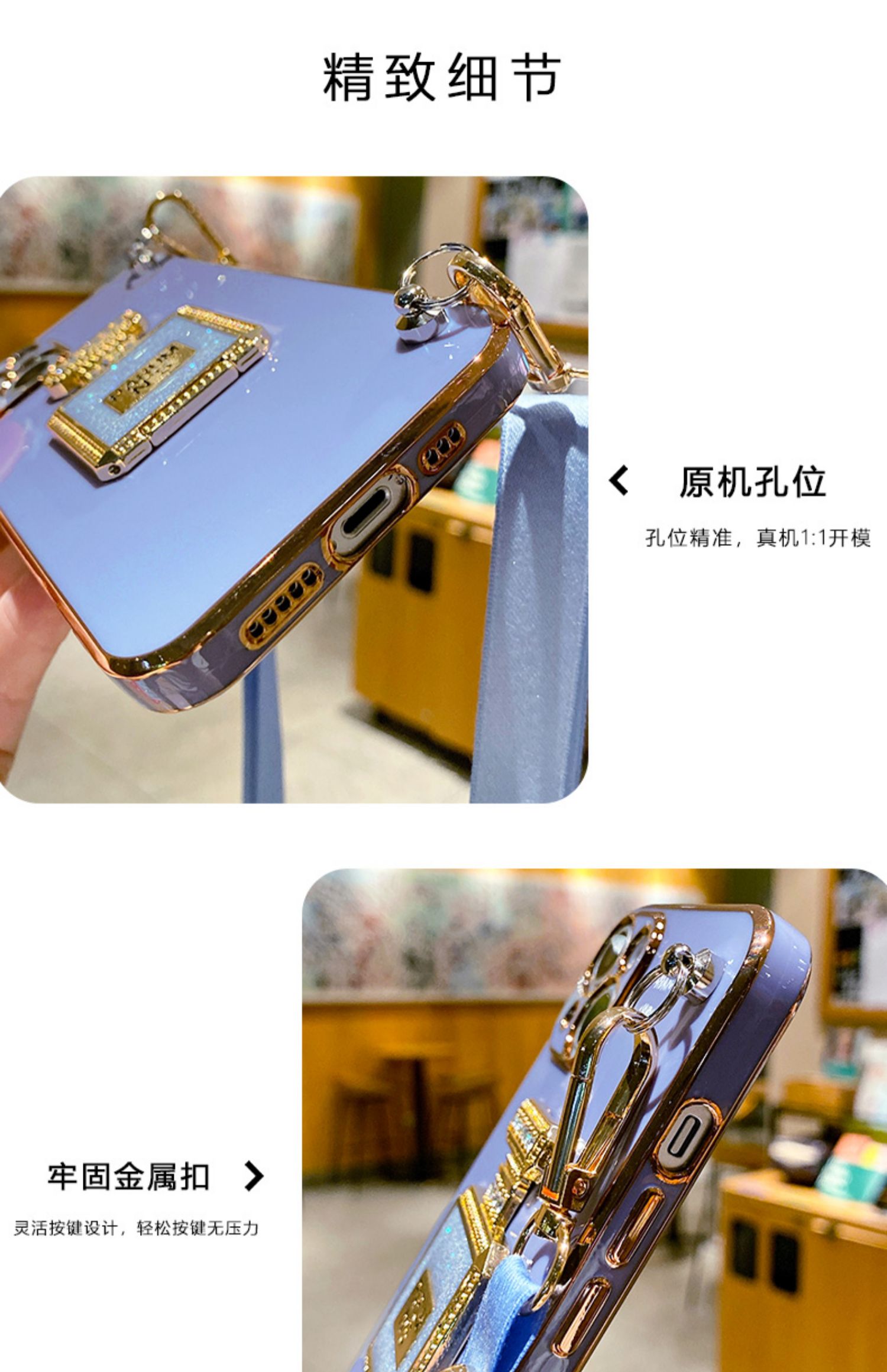 多功能蘋果13手機殼新款鏡頭全包12promax高級感女款iPhone11補妝鏡子XR帶支架xs掛繩7plus可背8p斜挎6sp硅膠