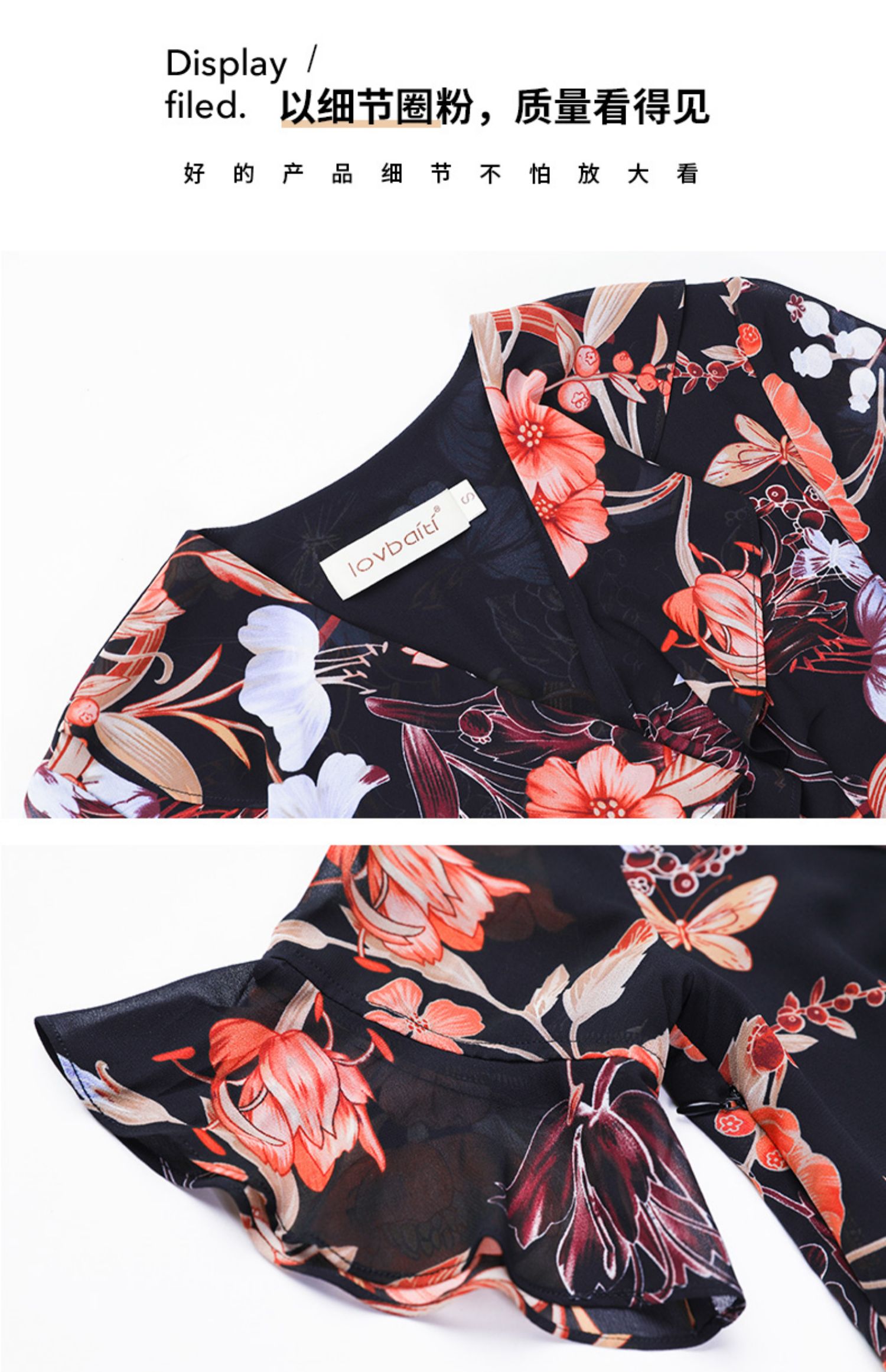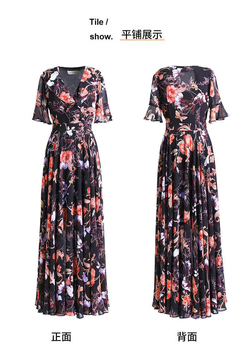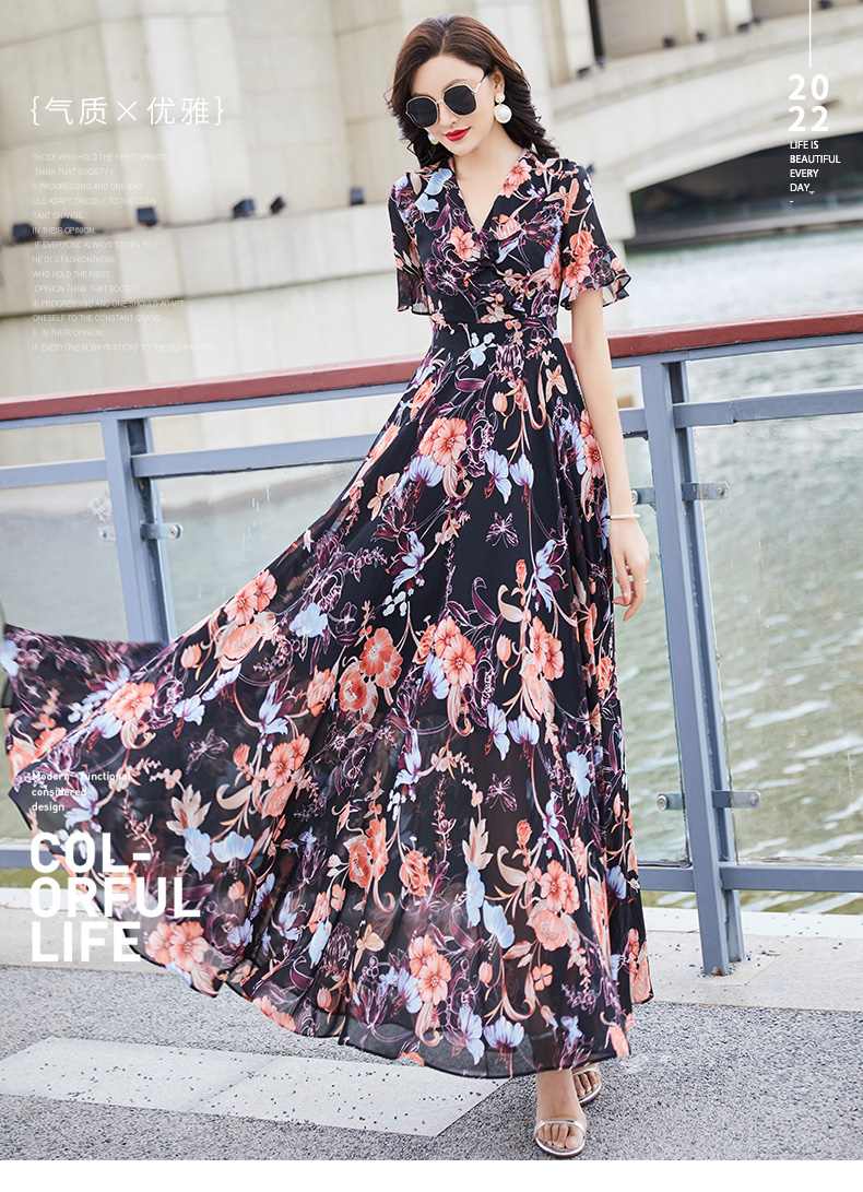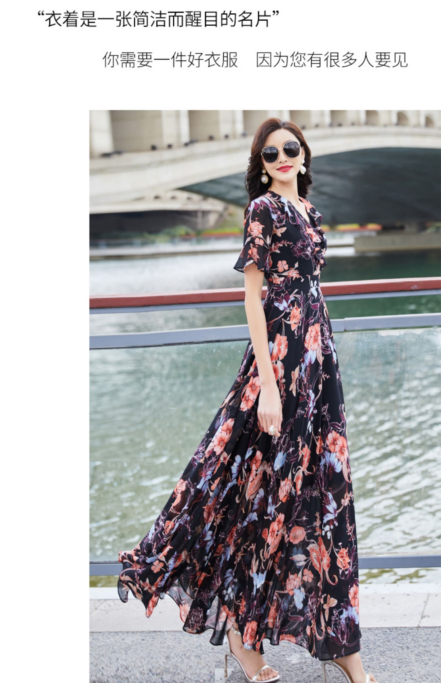 雪紡碎花女新款夏荷葉袖氣質長裙