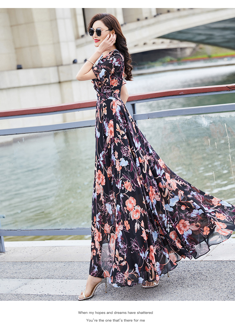 連衣裙女夏2023新款氣質修身顯瘦超長款水墨印花大擺度假裙子816