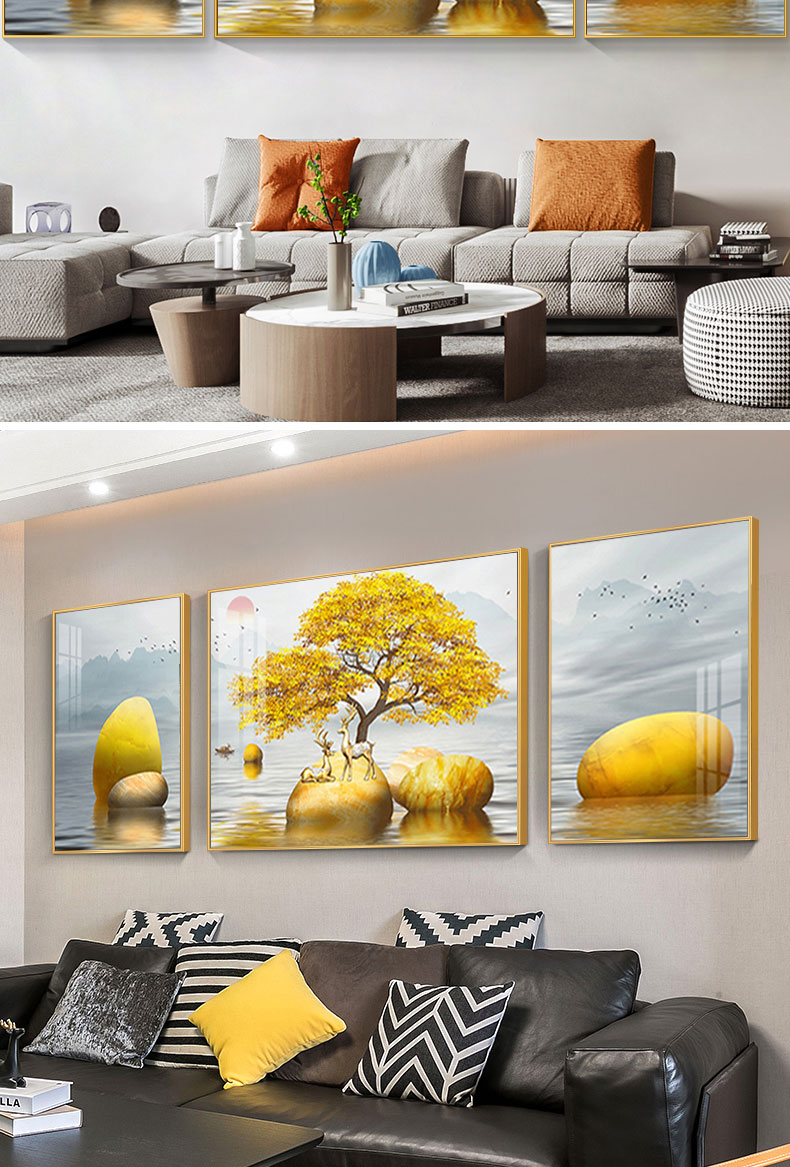 5d鉆石滿鉆客廳麋鹿三聯畫點十字繡