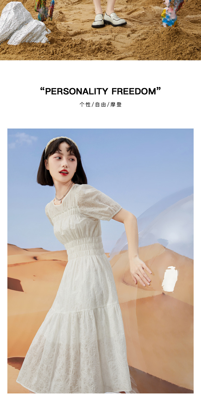 海貝設計感紋理收腰顯瘦法式氣質仙女公主裙2023夏短袖連衣裙長裙