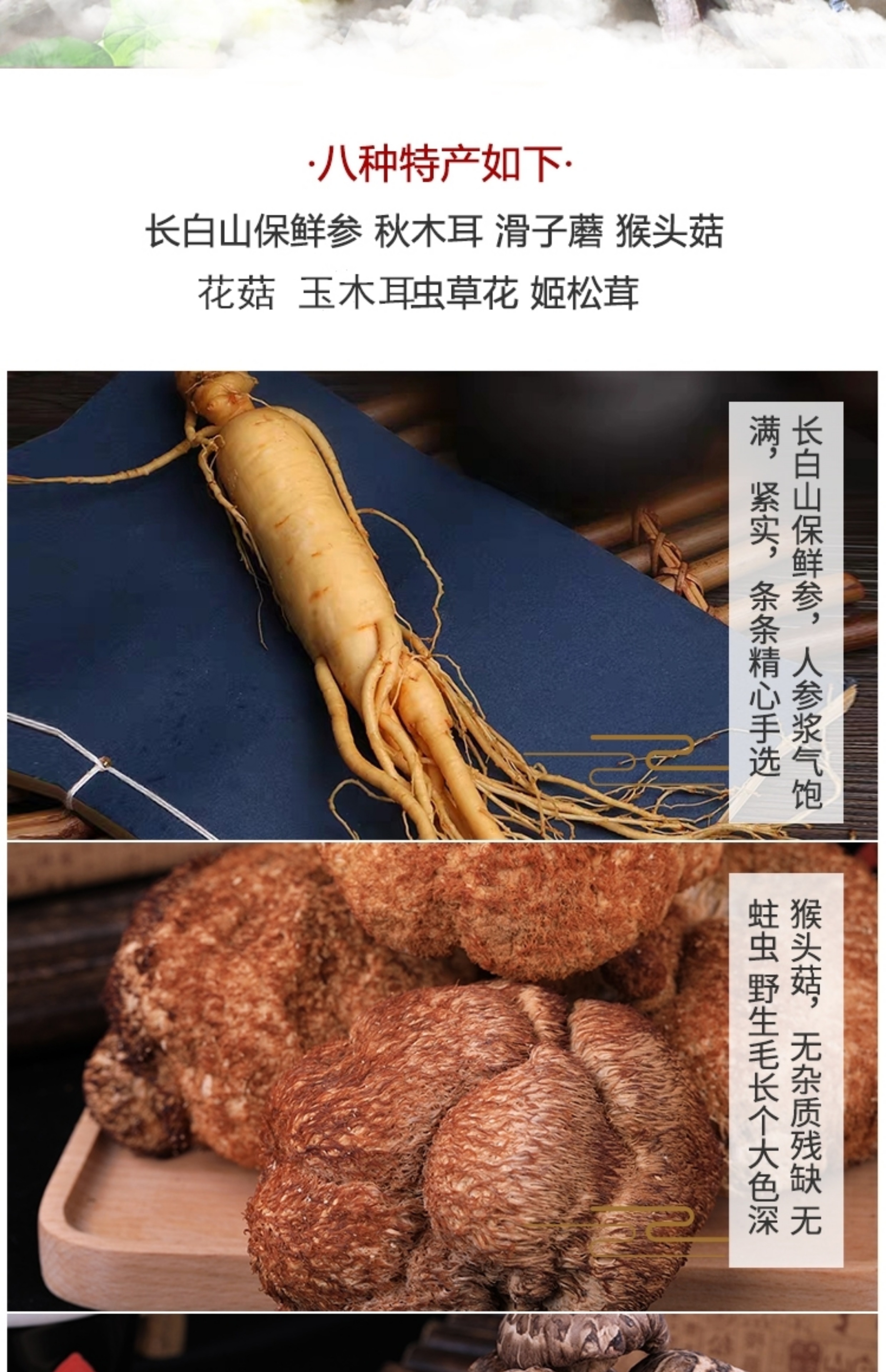 東北特產禮盒裝山貨人參八樣組合送禮福利蘑菇菌菇木耳農產品禮包