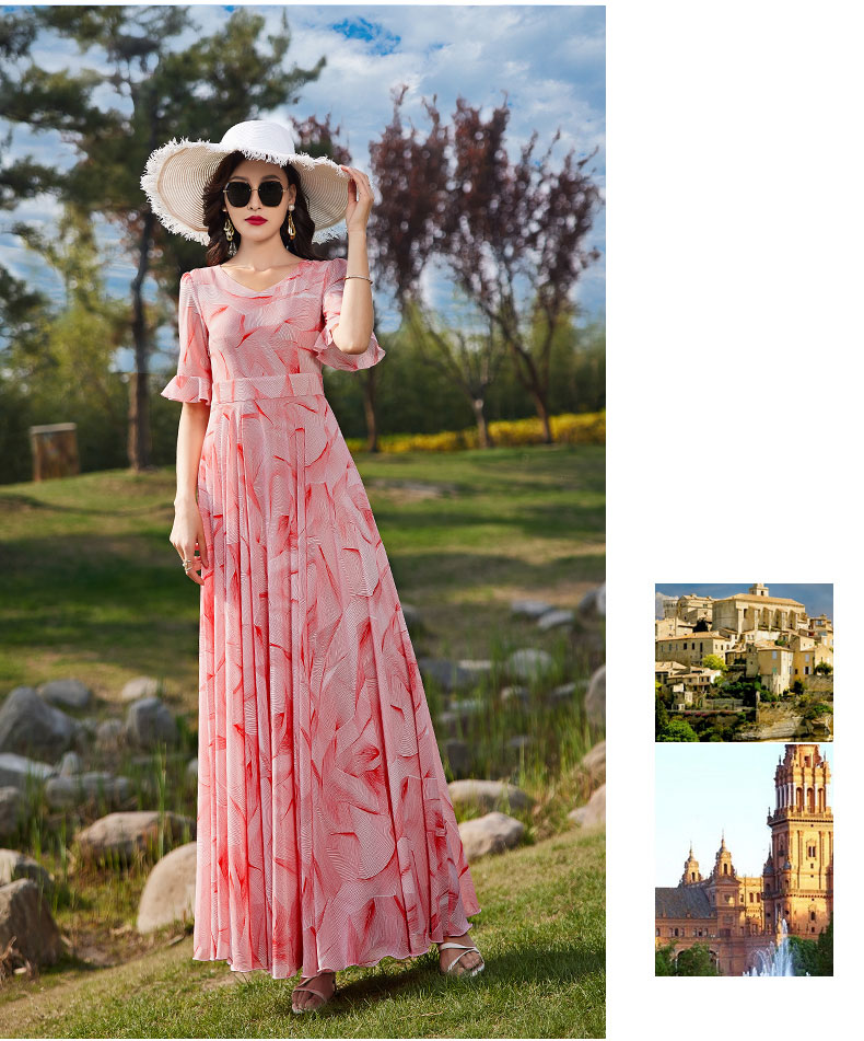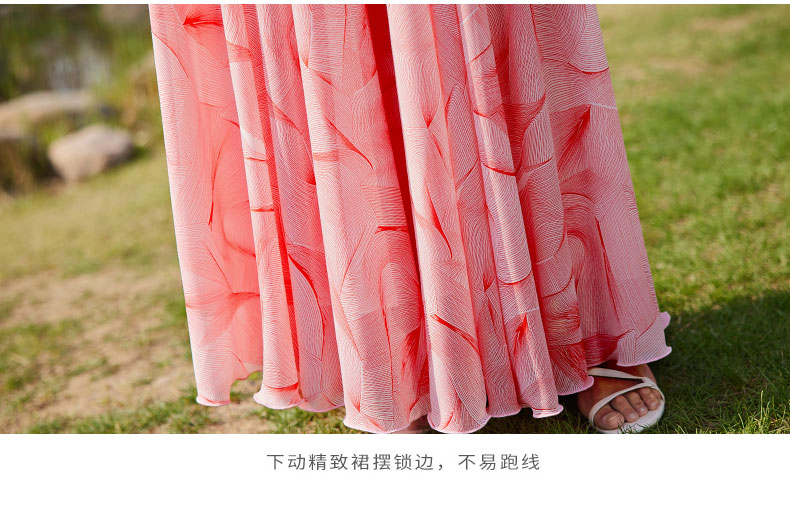 2023年夏季雪紡印花長款過膝沙灘裙