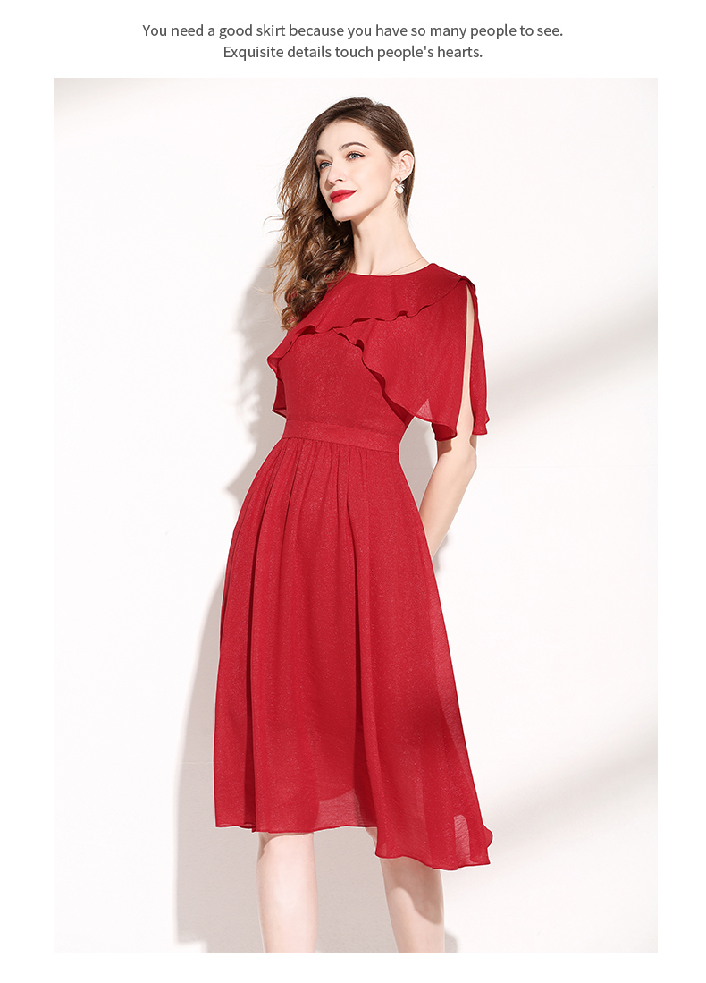 夏季女裝2023年新款減齡氣質荷葉袖紅色連衣裙設計感小眾雪紡裙