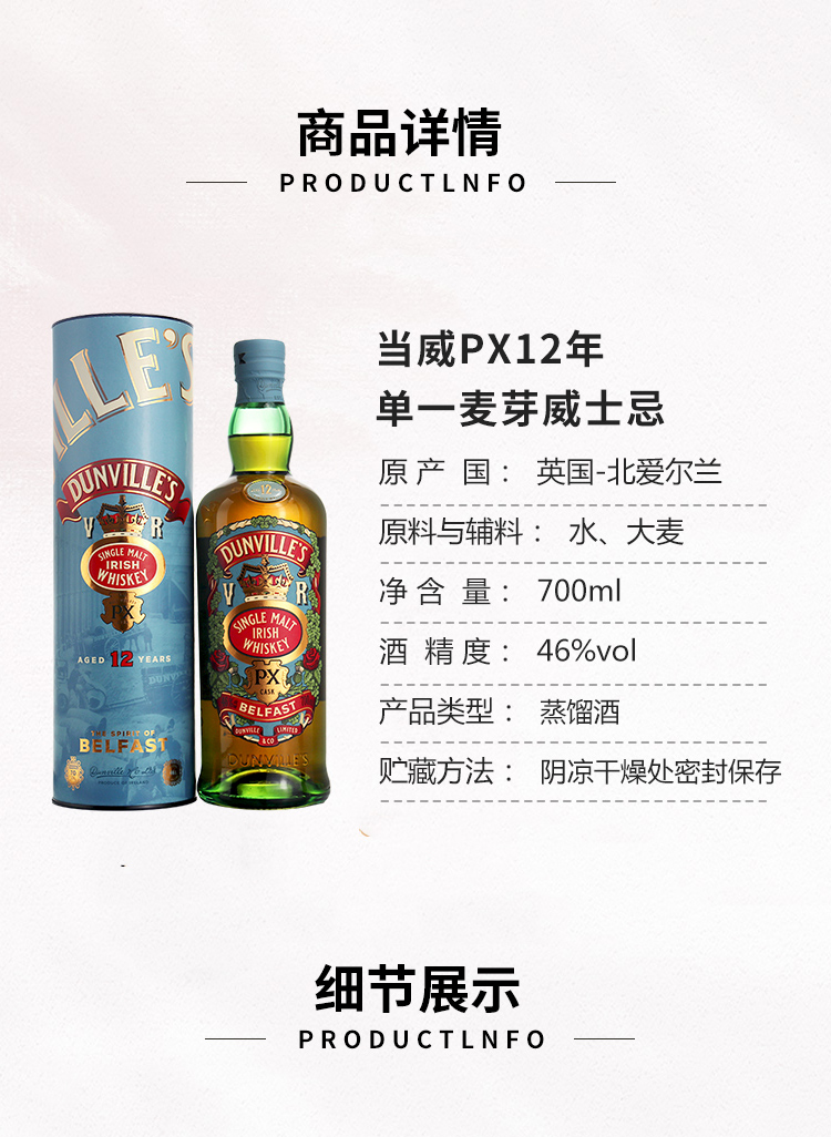 DUNVILLE`S當威PX12單一麥芽威士忌700ml愛爾蘭原瓶進口洋酒烈酒