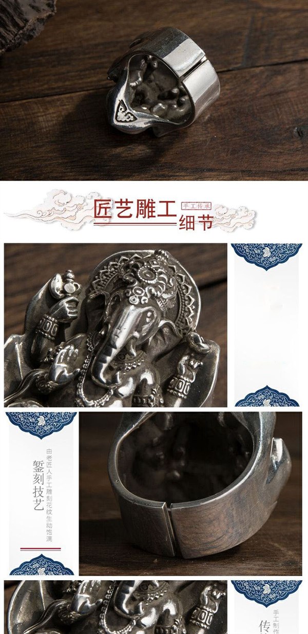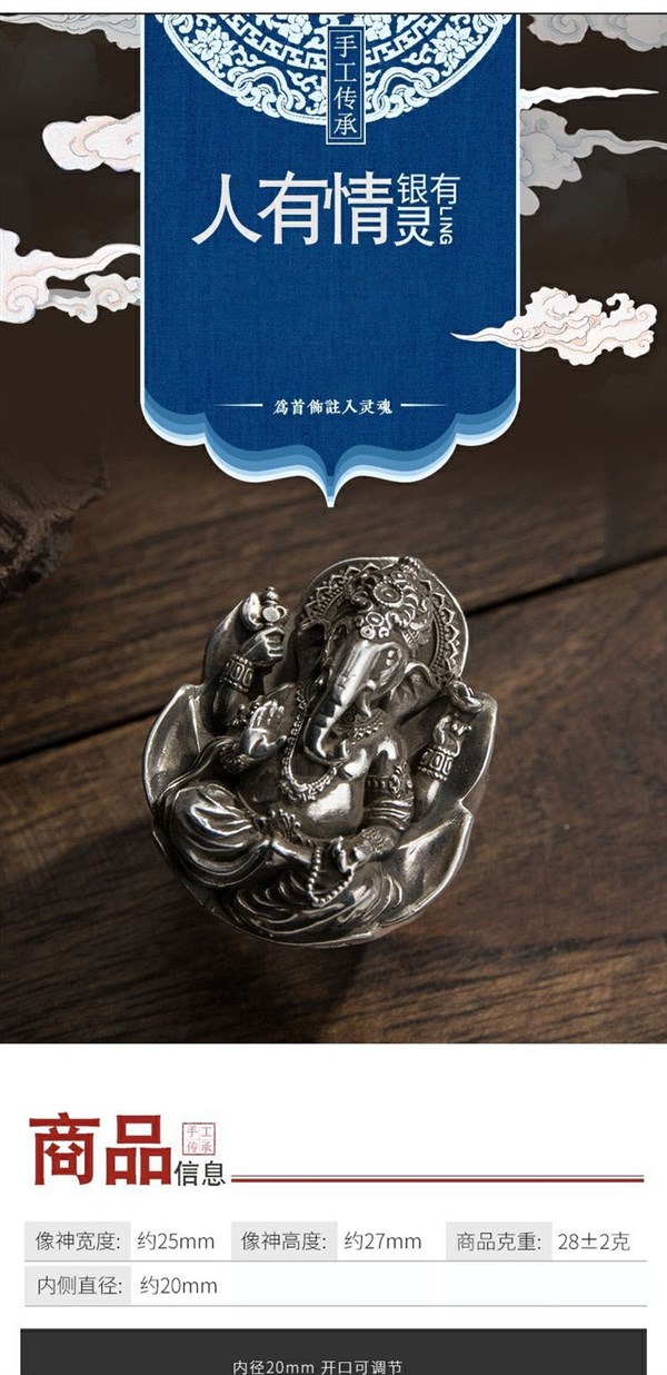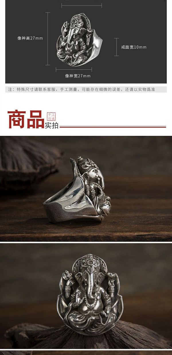 新款手工泰國象神戒指 男款個性復古大象手飾品 開口可調節指環