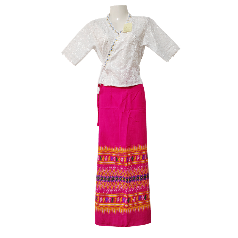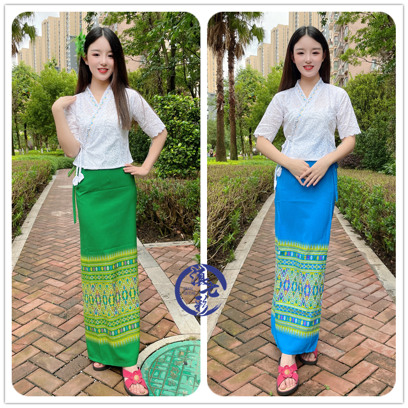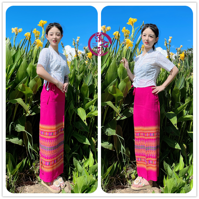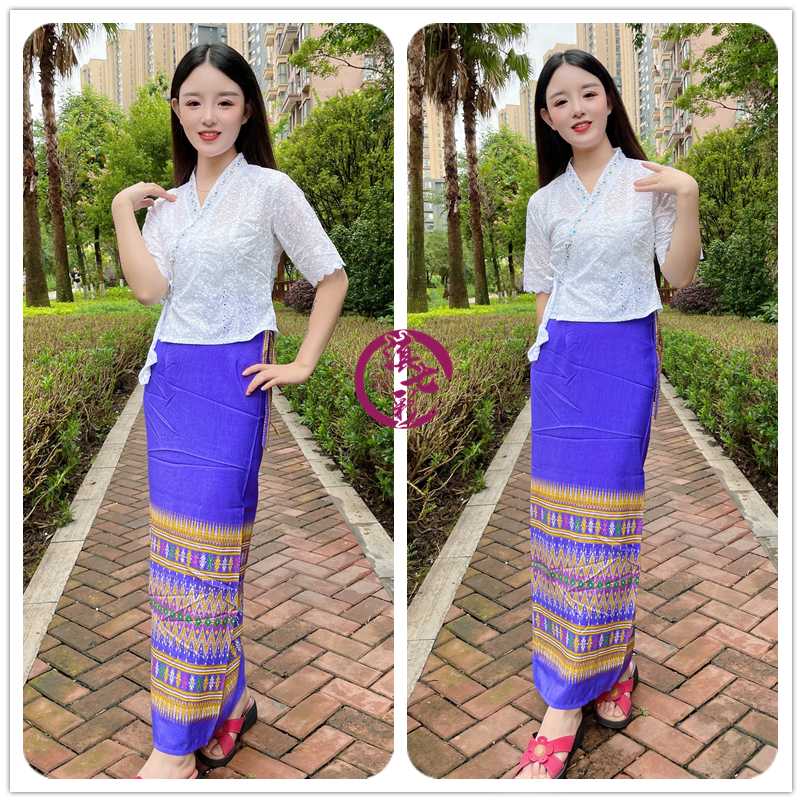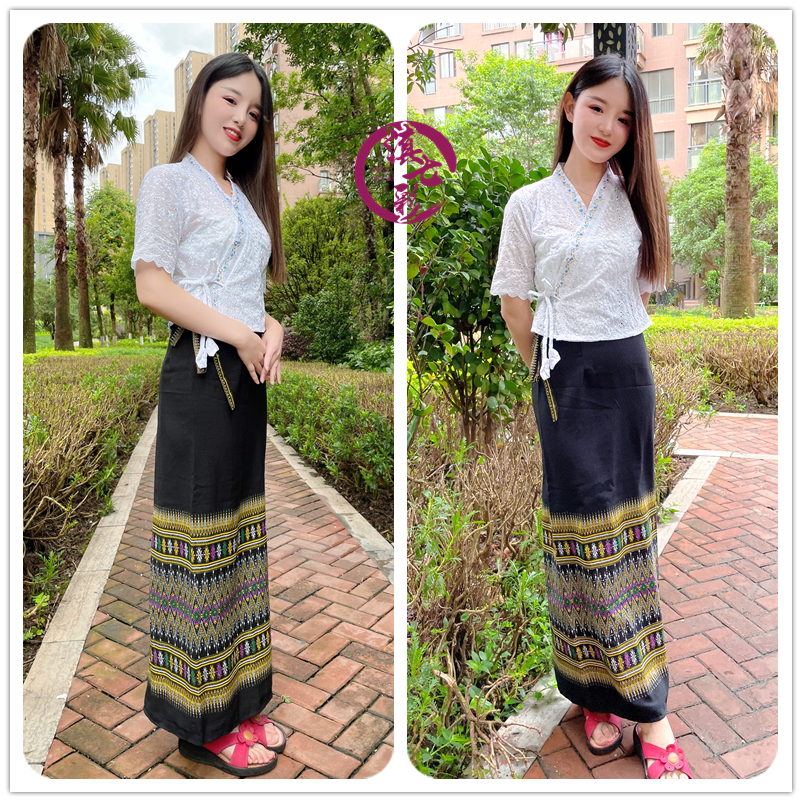 泰國傣族女裝套裝長袖雙層壓花筒裙