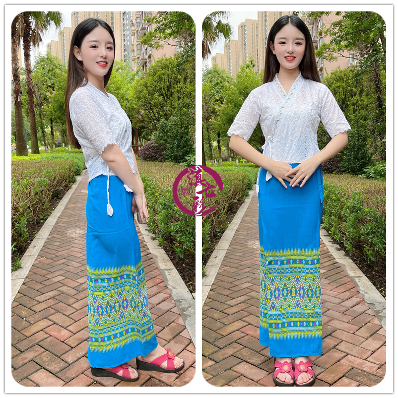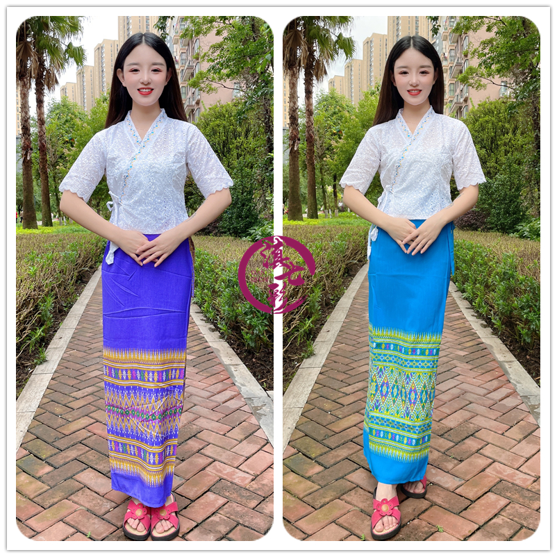 新款西雙版納傣族服裝女中袖上衣長裙工作服傳統傣族裙套裝日常裝