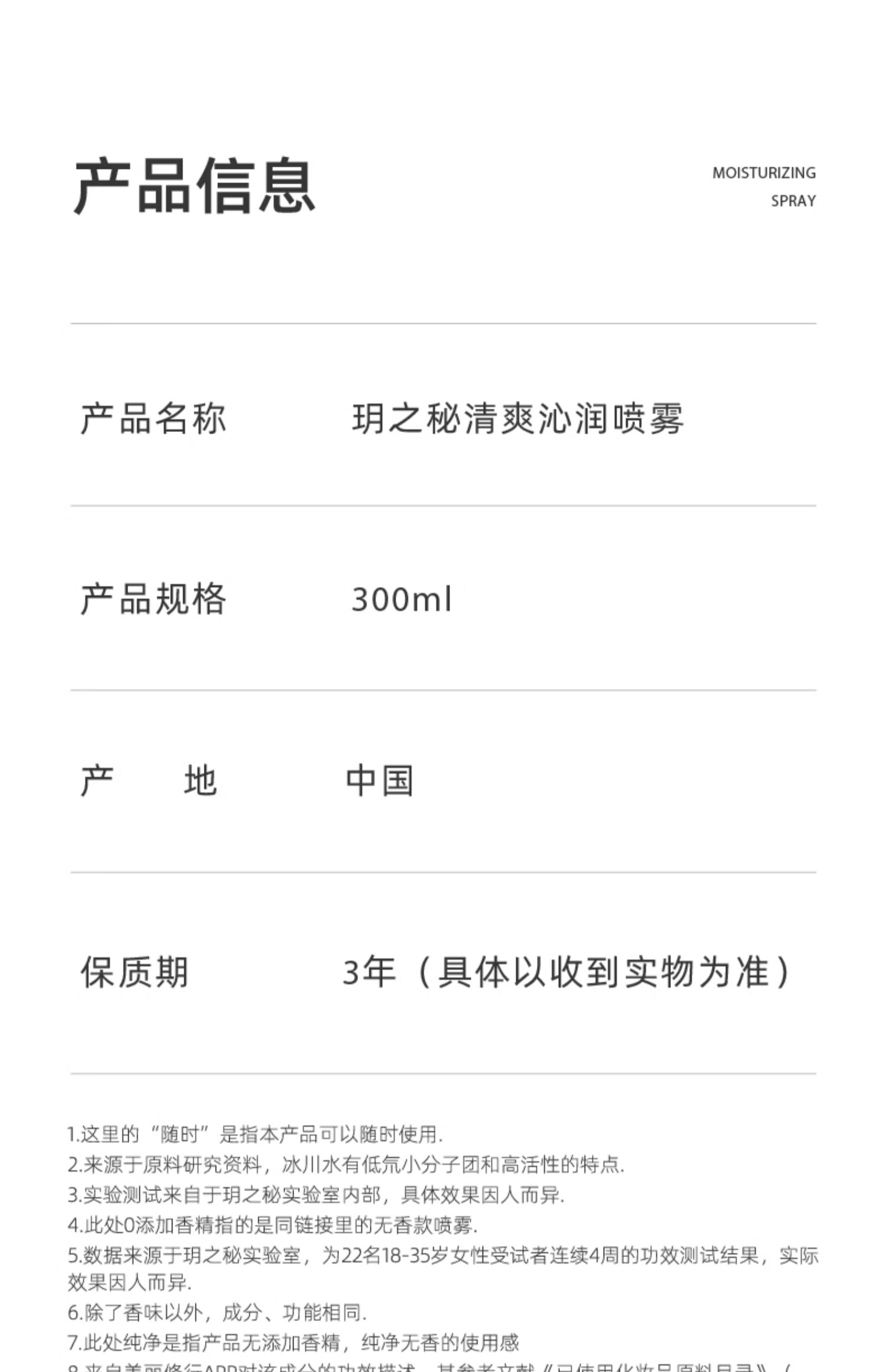【冰川溫泉水】玥之秘新品補水噴霧清爽沁潤保濕潤膚水300ml