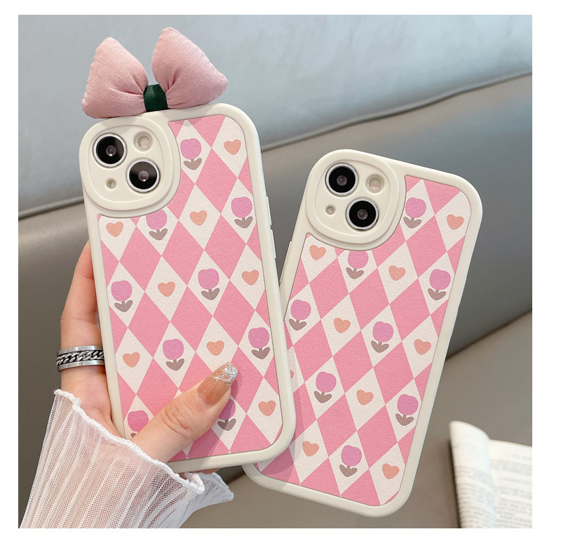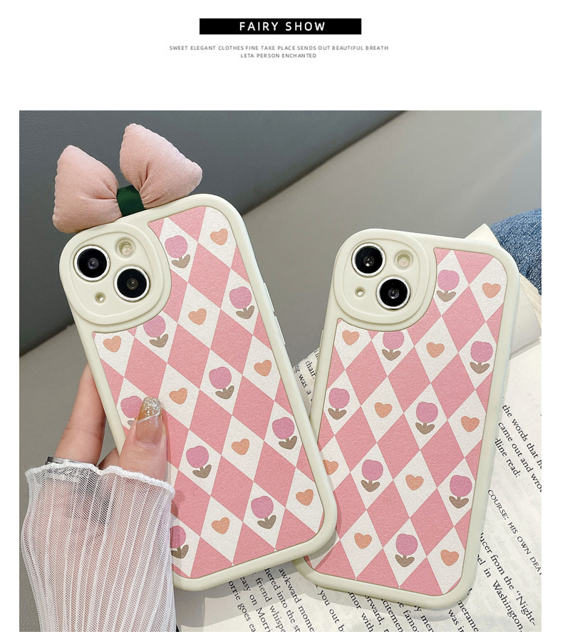 曉琴立體蝴蝶結陵格愛心郁金香適用蘋果13promax手機殼iphone12pm少女ip11新品鏡頭全包硅膠軟套高檔皮紋清新