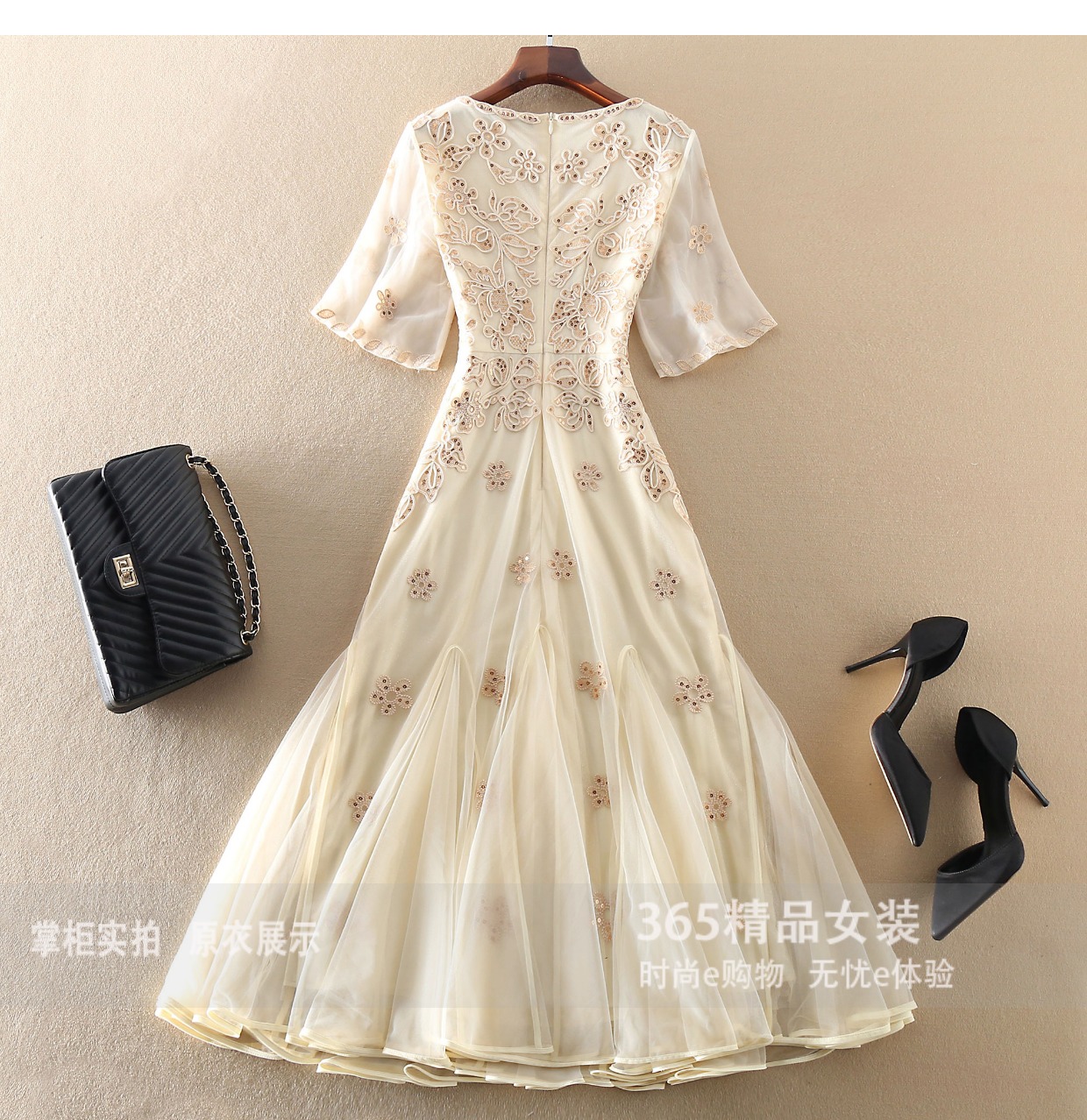 高端優雅氣質媽媽裝修身顯瘦禮服裙子宴會年輕高級感網紗連衣裙夏