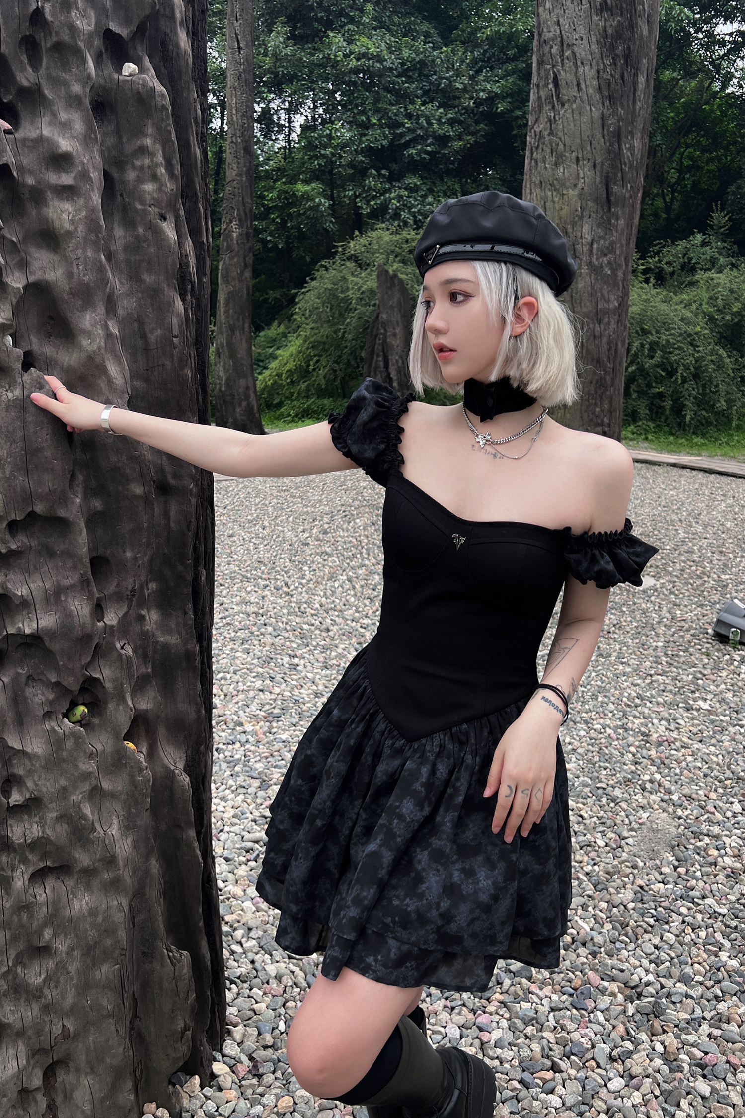 VOCK 暮色霧漫 暗黑小眾設計抹胸裙不規則收腰蓬蓬裙吊帶連衣裙女