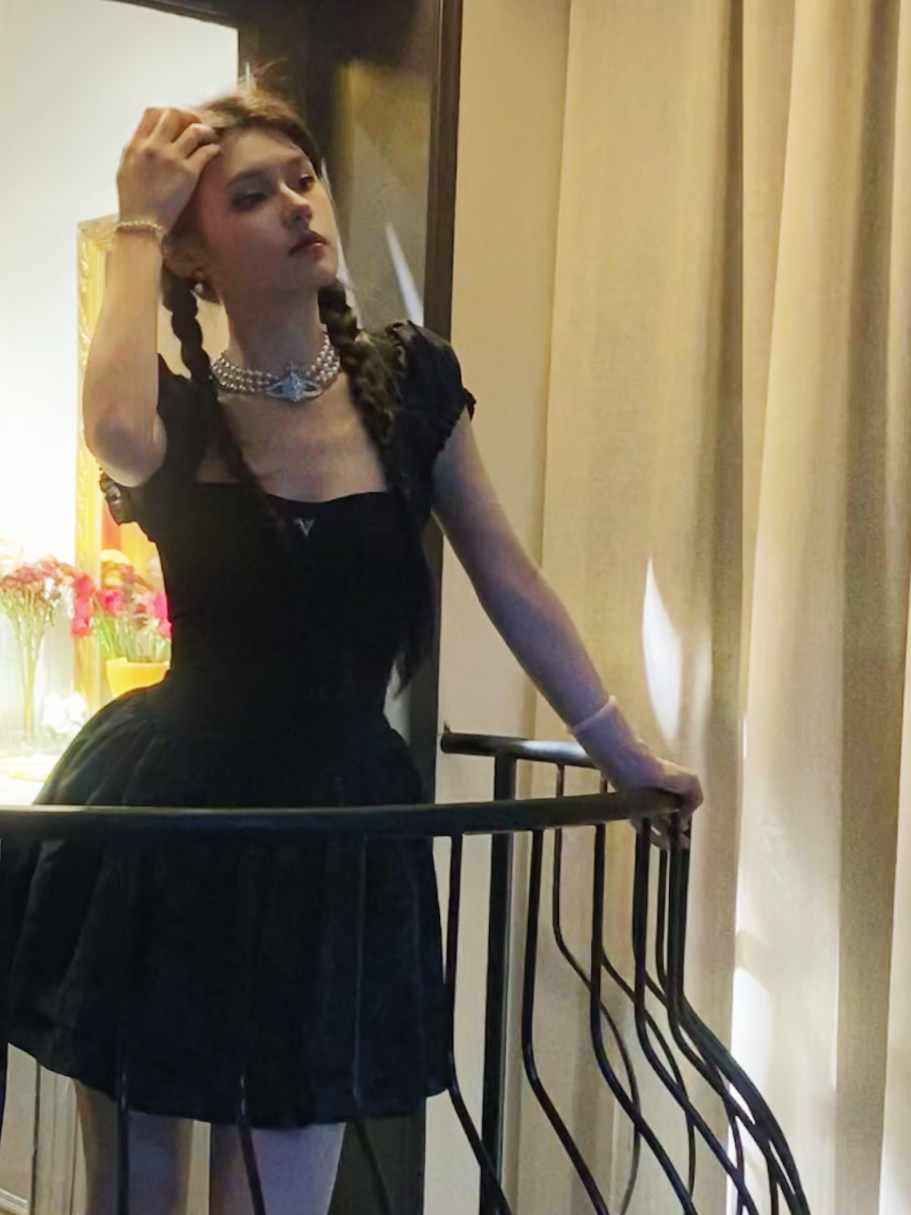 VOCK原創 迷霧薔薇 暗黑宮廷風小眾設計顯瘦蓬蓬裙肌理感連衣裙