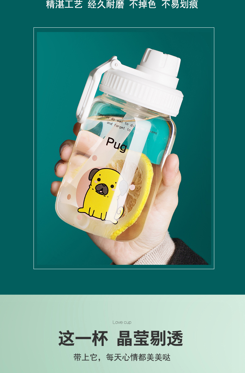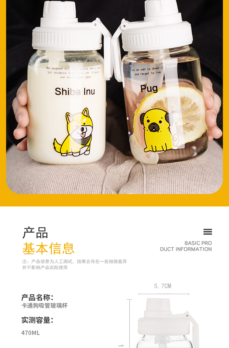 帶吸管女生大容量耐熱防爆玻璃杯
