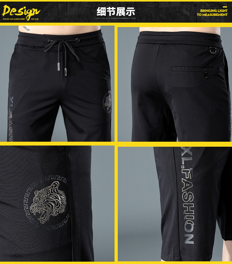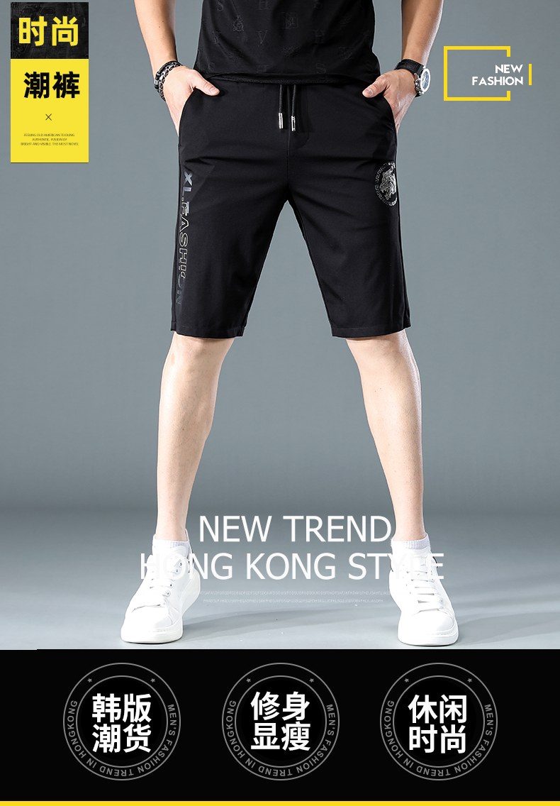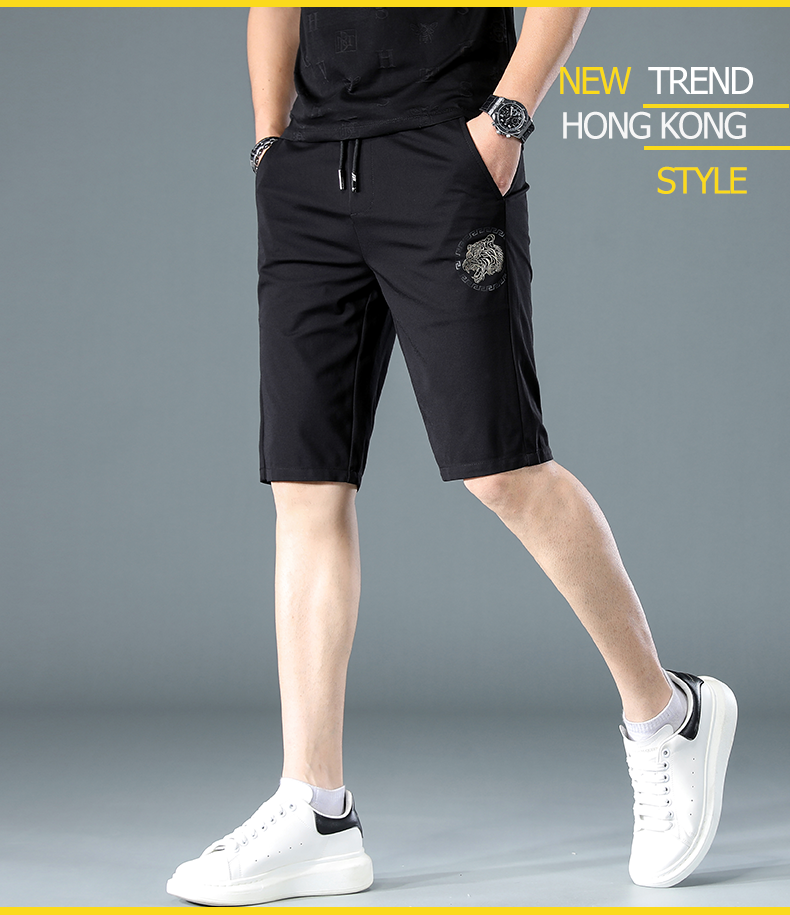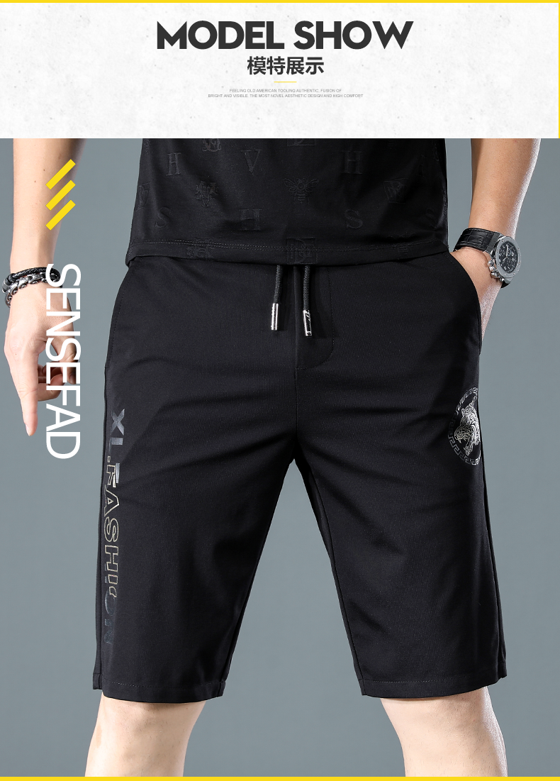 2023歐版男款外穿冰絲短褲潮流虎頭印花休閑五分褲男夏季運動中褲