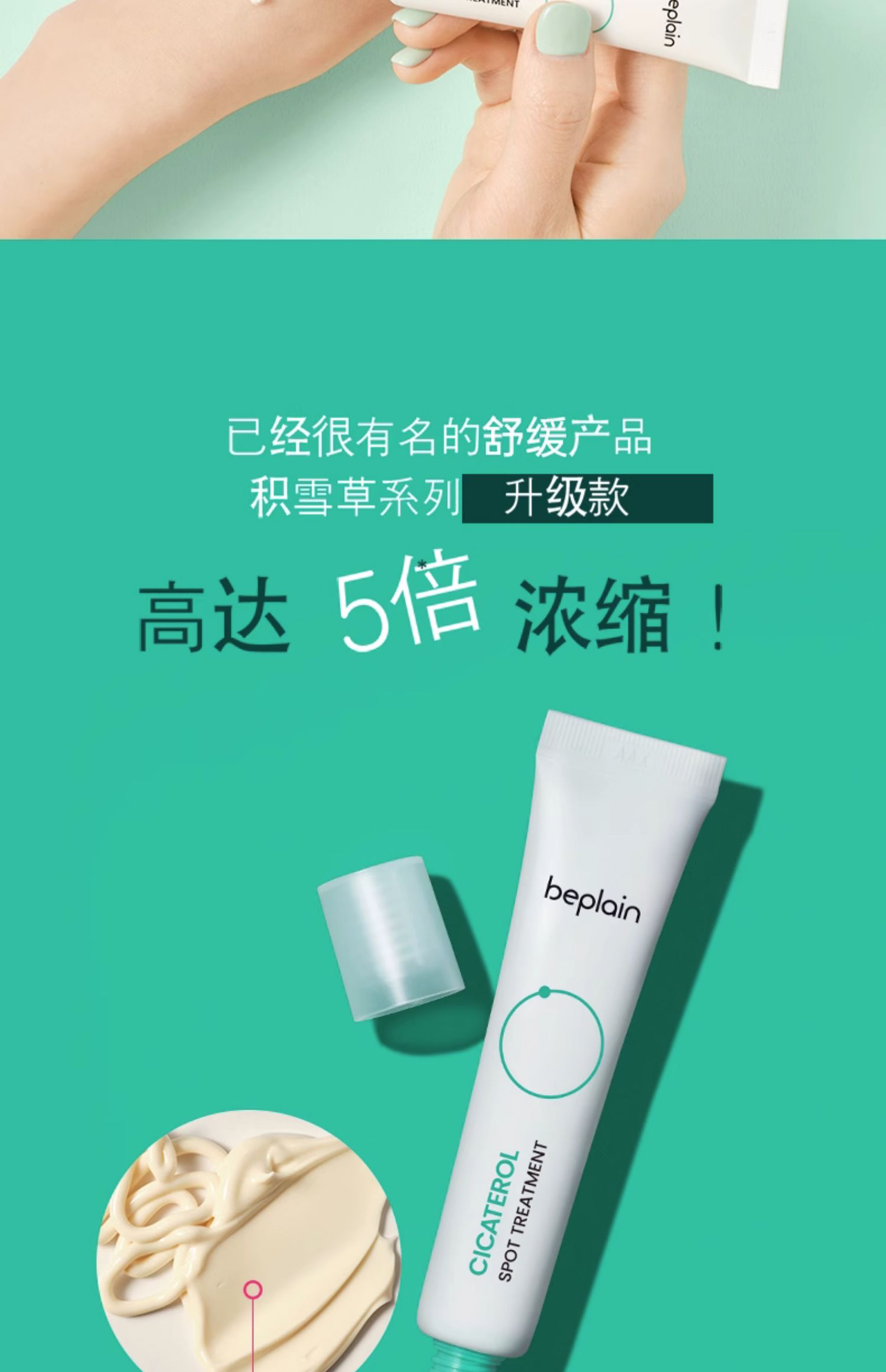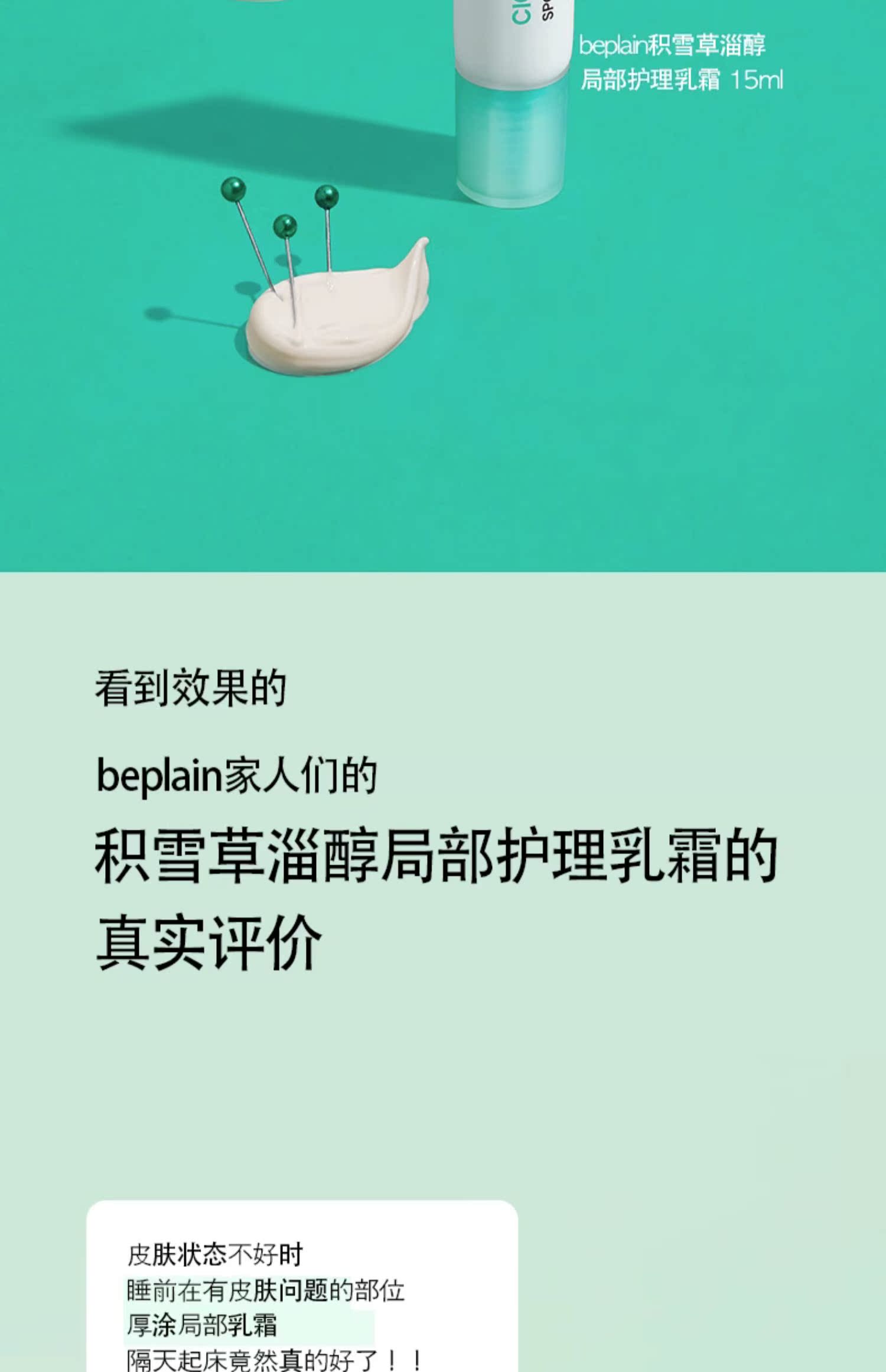 韓國化解官方beplain碧菲音積雪草淄醇局部護理乳霜15ml保濕舒緩