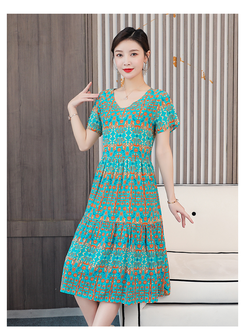 2021新款純棉綢大碼高貴媽媽連衣裙