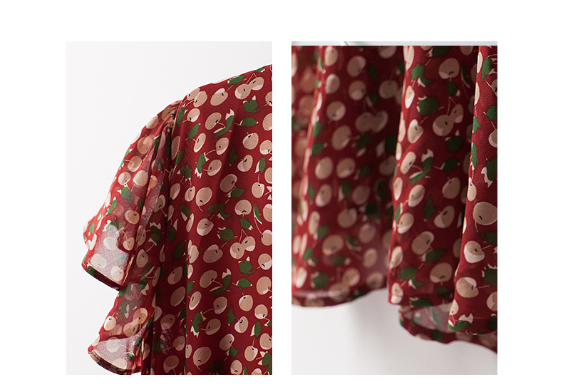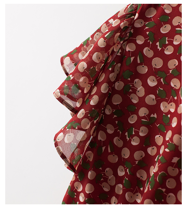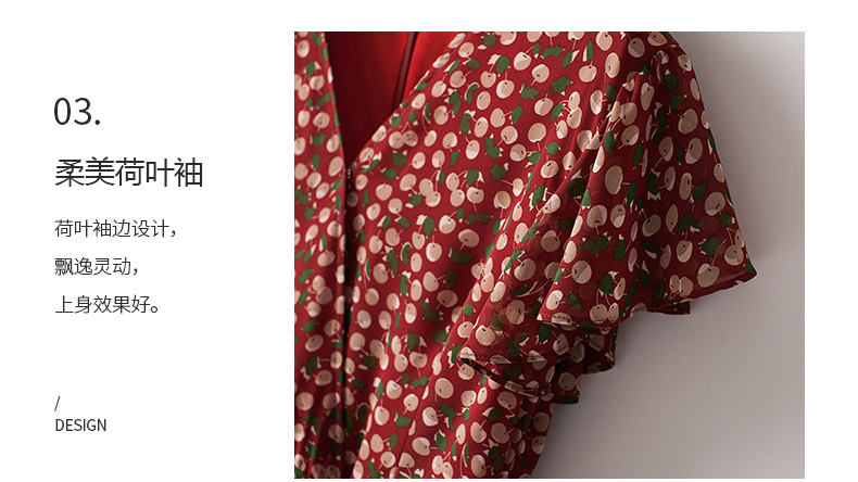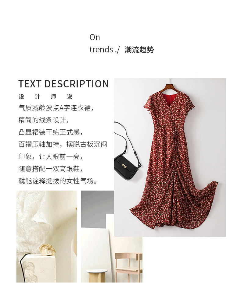 BXV小碎花真絲連衣裙女中長款2023夏新款時尚V領印花桑蠶絲長裙子