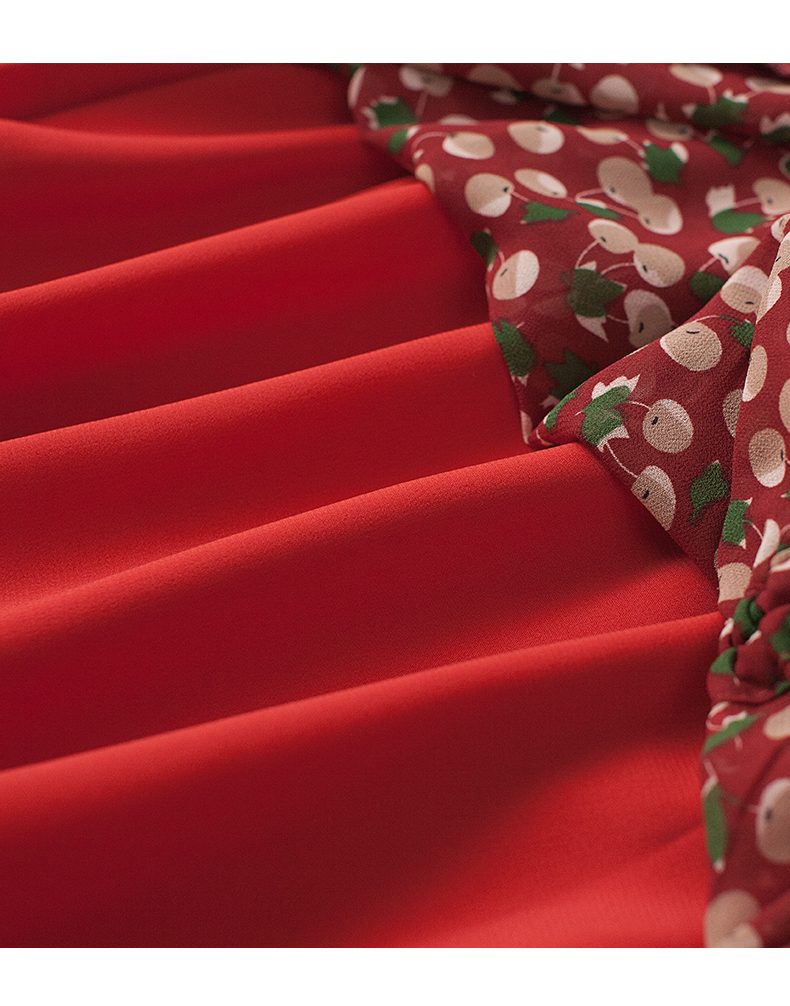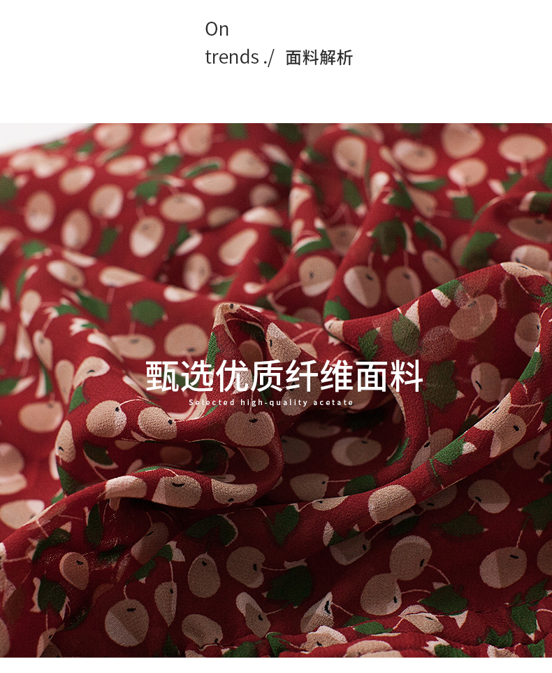 波點印花抽褶連衣裙女中長款2023夏季新款休閑碎花v領長裙A字裙子