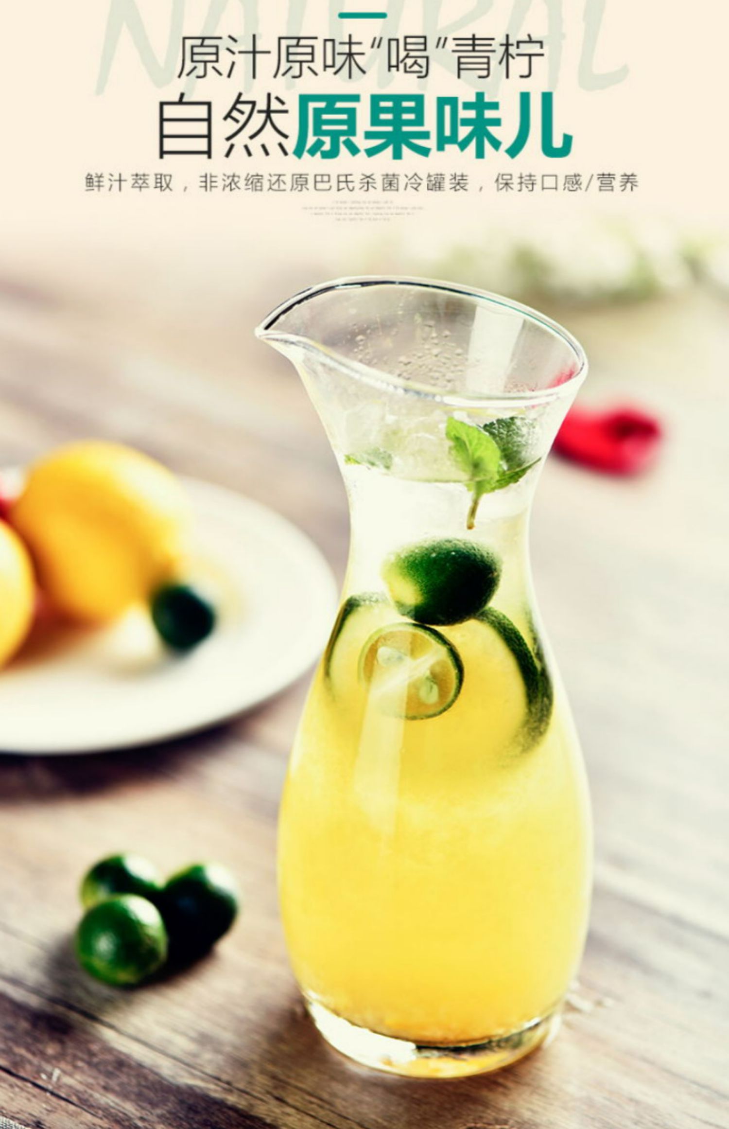 佰恩氏NFC鮮榨小青檸汁檸檬汁飲料無添加果蔬汁網紅飲品1L*1瓶裝