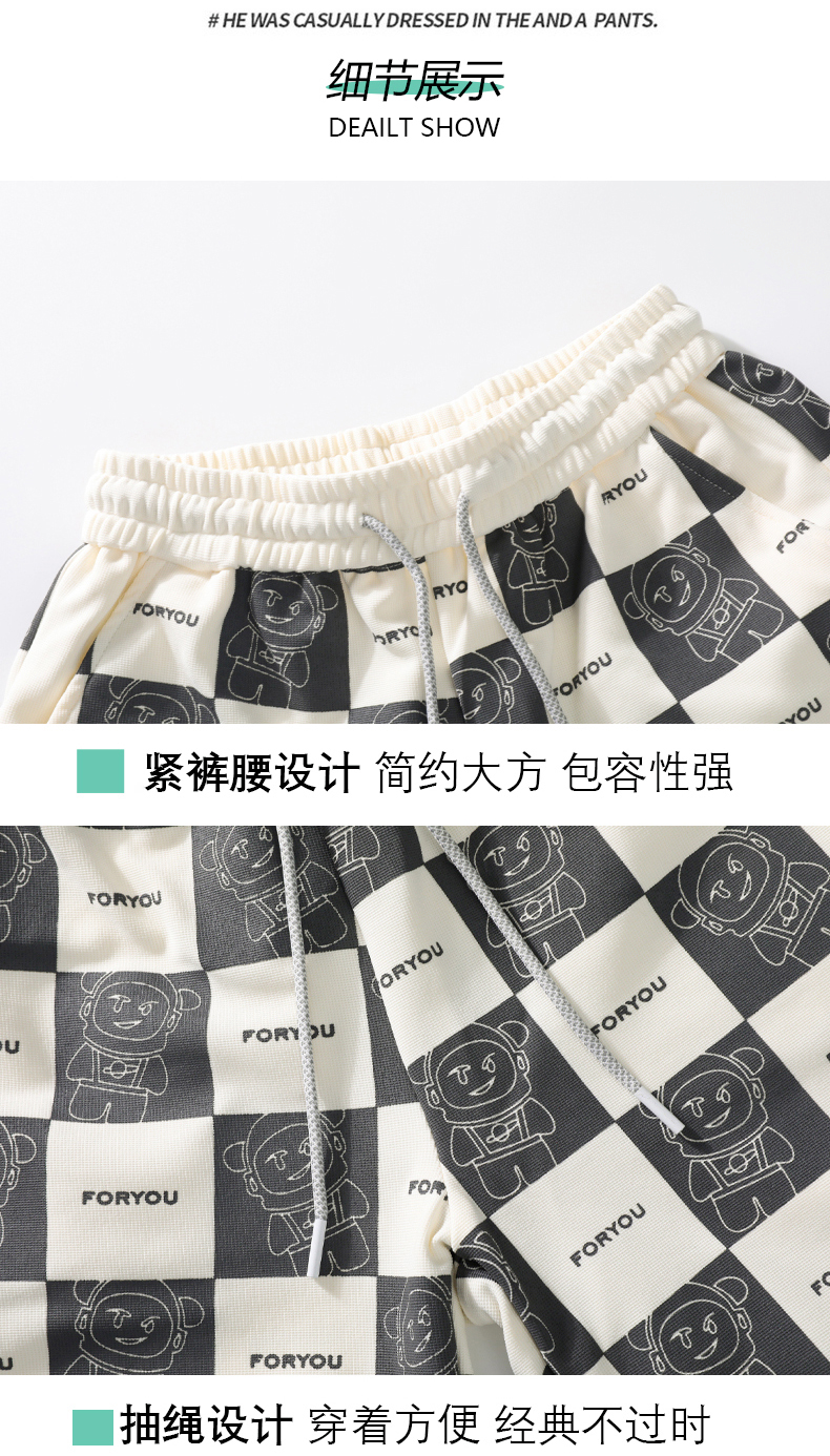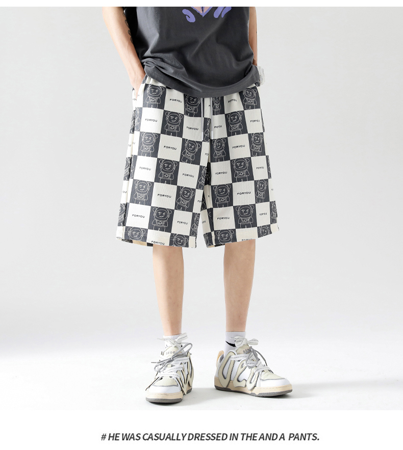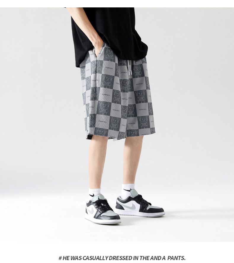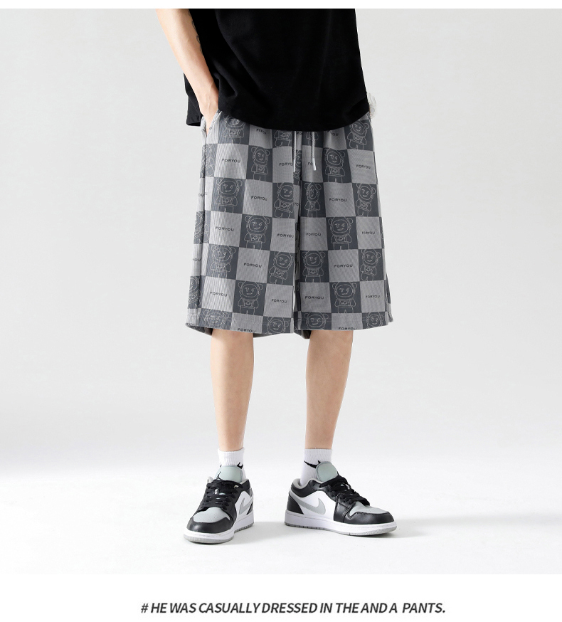 男生棋盤格褲子男短褲休閑運動寬松半截褲2023新款夏季五分褲中褲