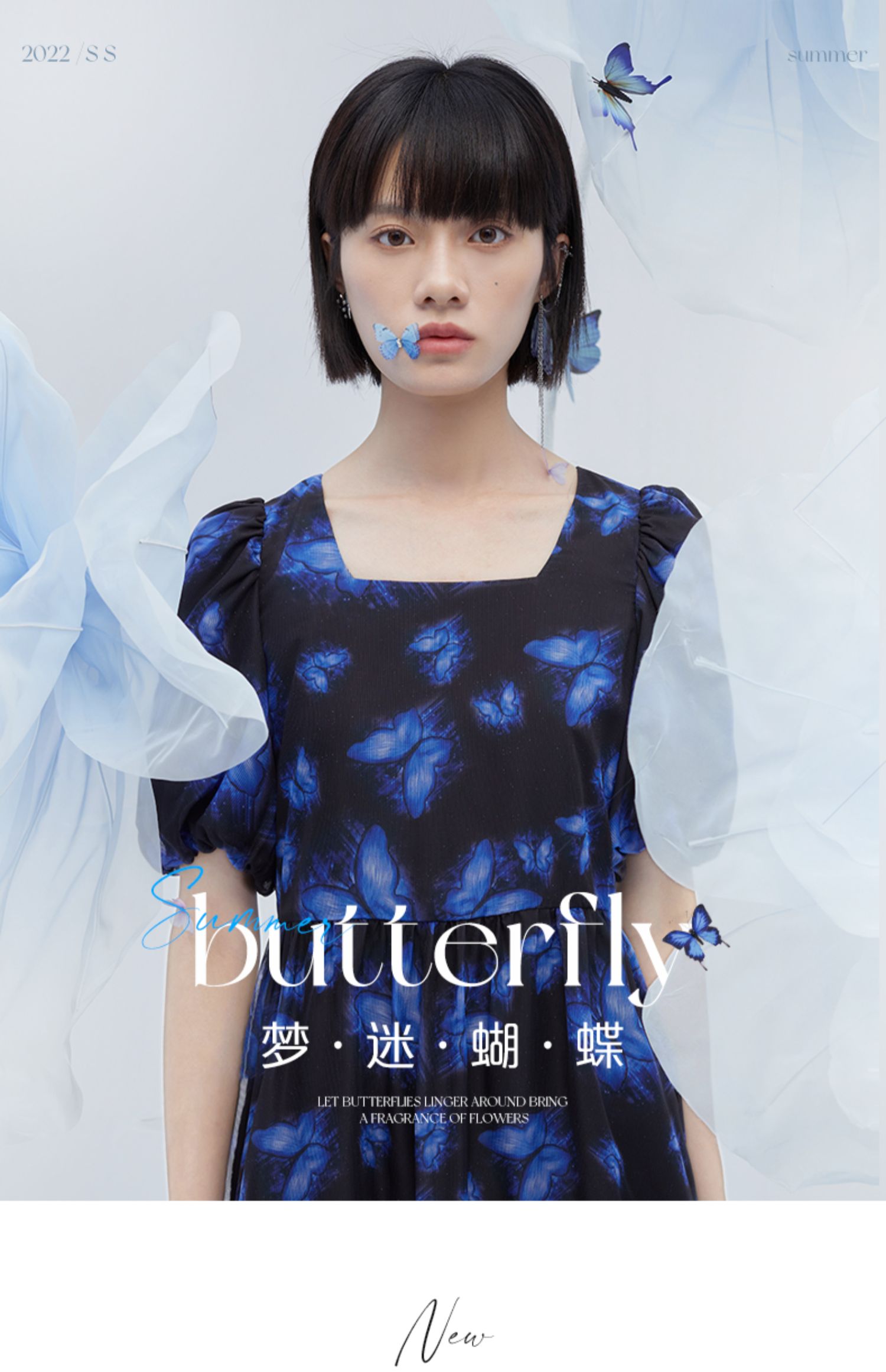 艾萊依商場同款茶歇法式連衣裙女2023女新款荷葉邊飛袖裙子女夏季