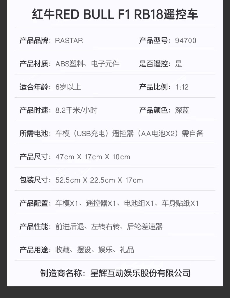 星輝紅牛遙控汽車方程式F1賽車大號電動模型車玩具車模收藏禮品