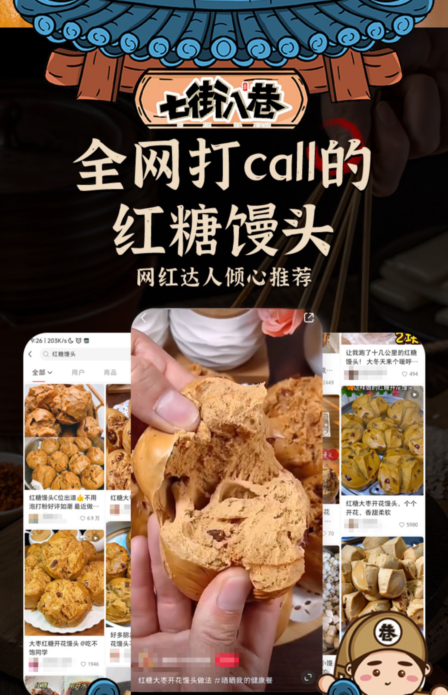 紅糖饅頭3斤快手早餐饅頭手工正宗手撕紅糖饅頭早點包子饅頭商用