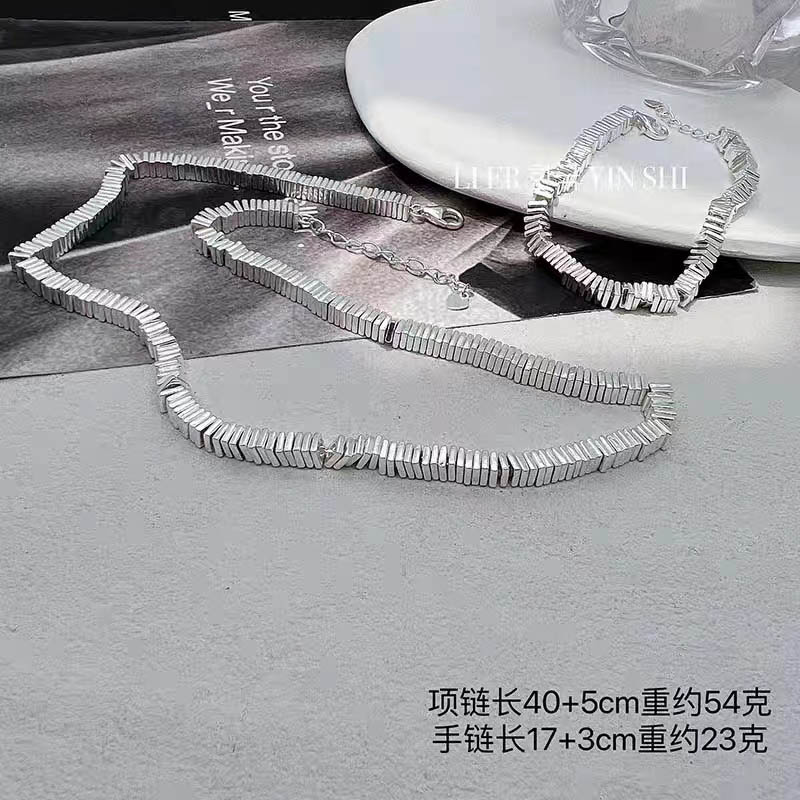 韓國原單s925純銀重工四方碎片項鏈女碎銀子鎖骨鏈輕奢亮閃氣質