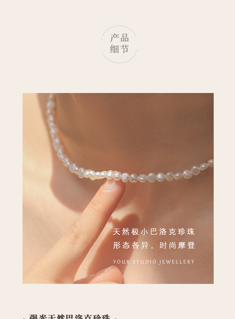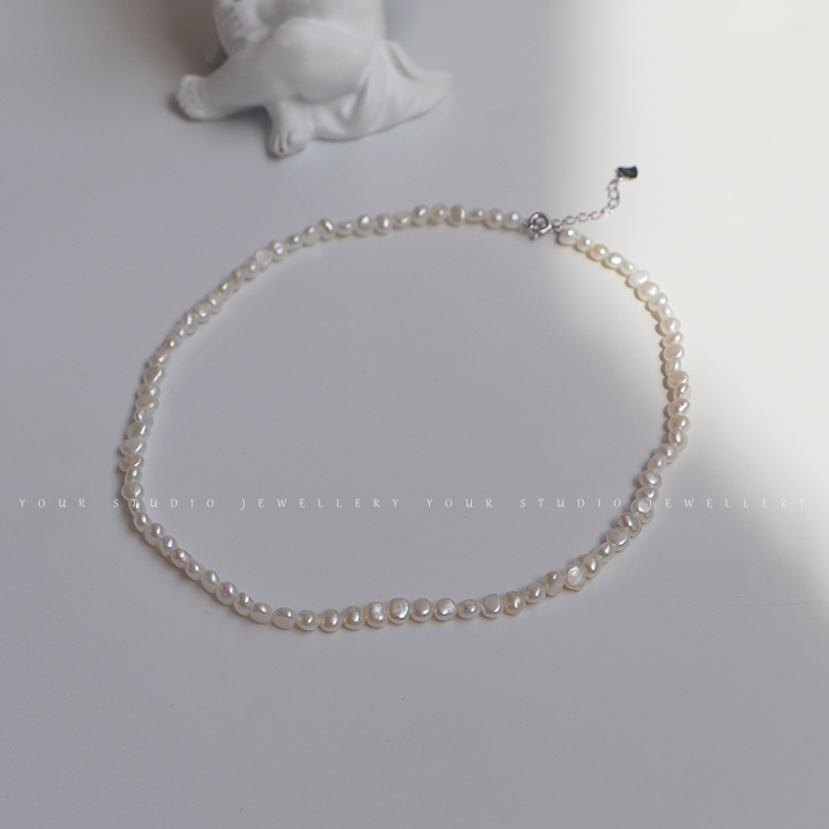 強光小尺寸天然巴洛克碎銀子珍珠項鏈鎖骨鏈純銀925時尚優雅氣質
