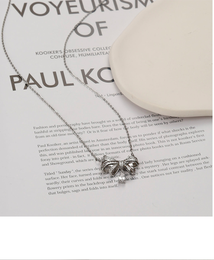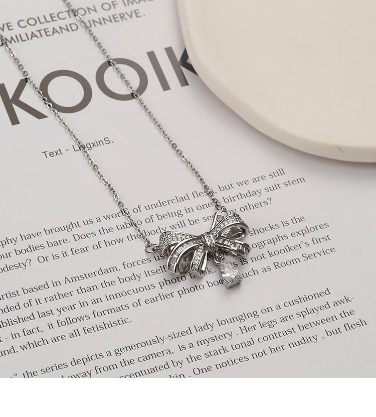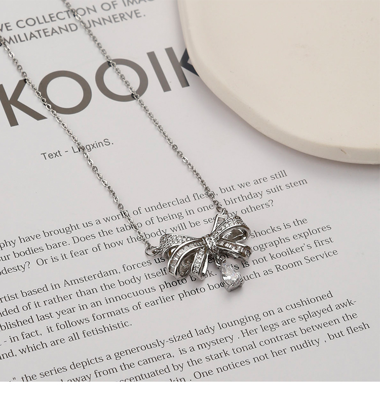 UNBEATEN滿鉆蝴蝶結水滴鋯石項鏈女輕奢小眾設計高級感精致鎖骨鏈