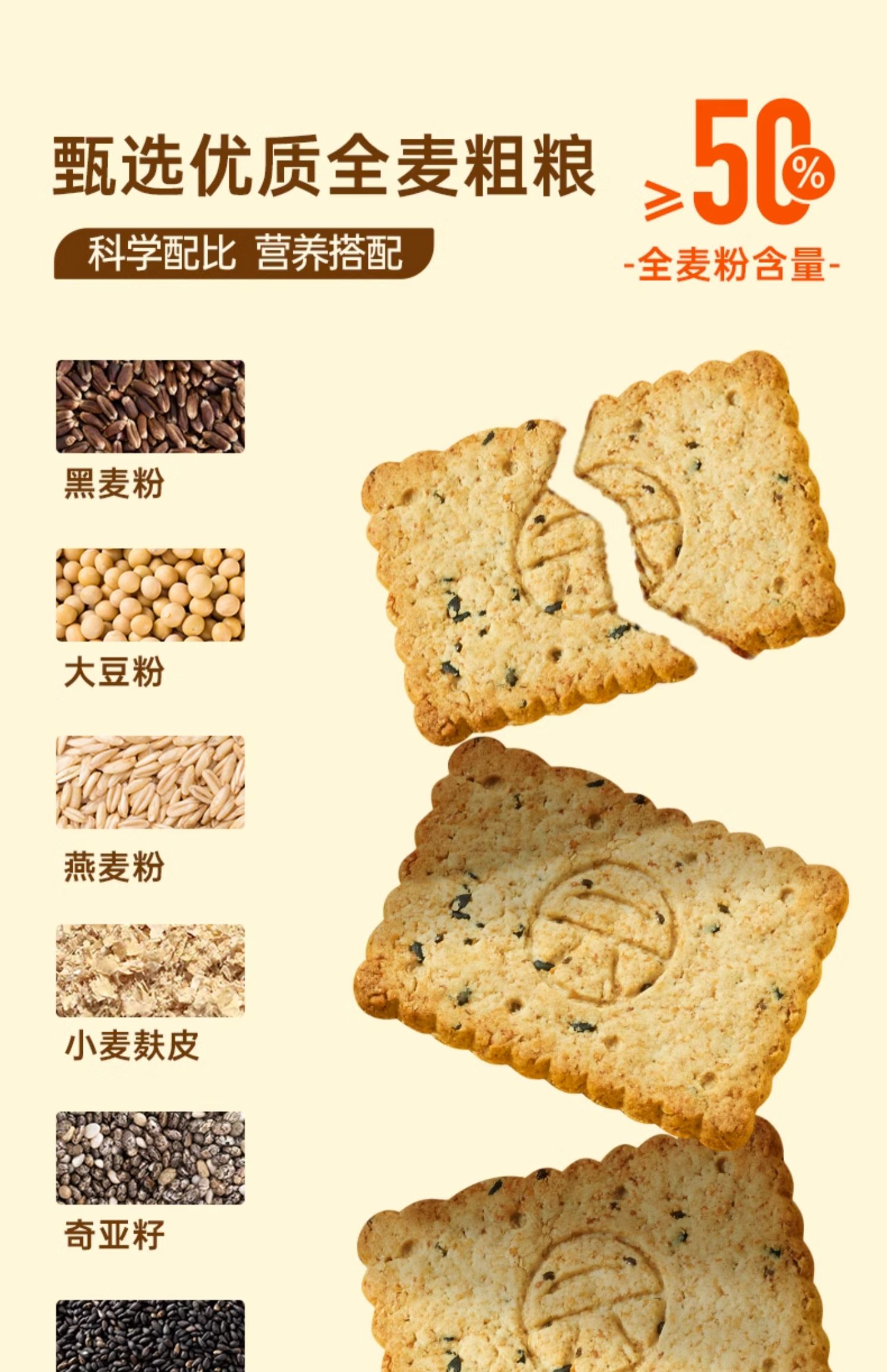 黑芝麻味低GI全麥餅干粗糧卡脂肪0低代餐飽腹無蔗糖營養熱量早餐
