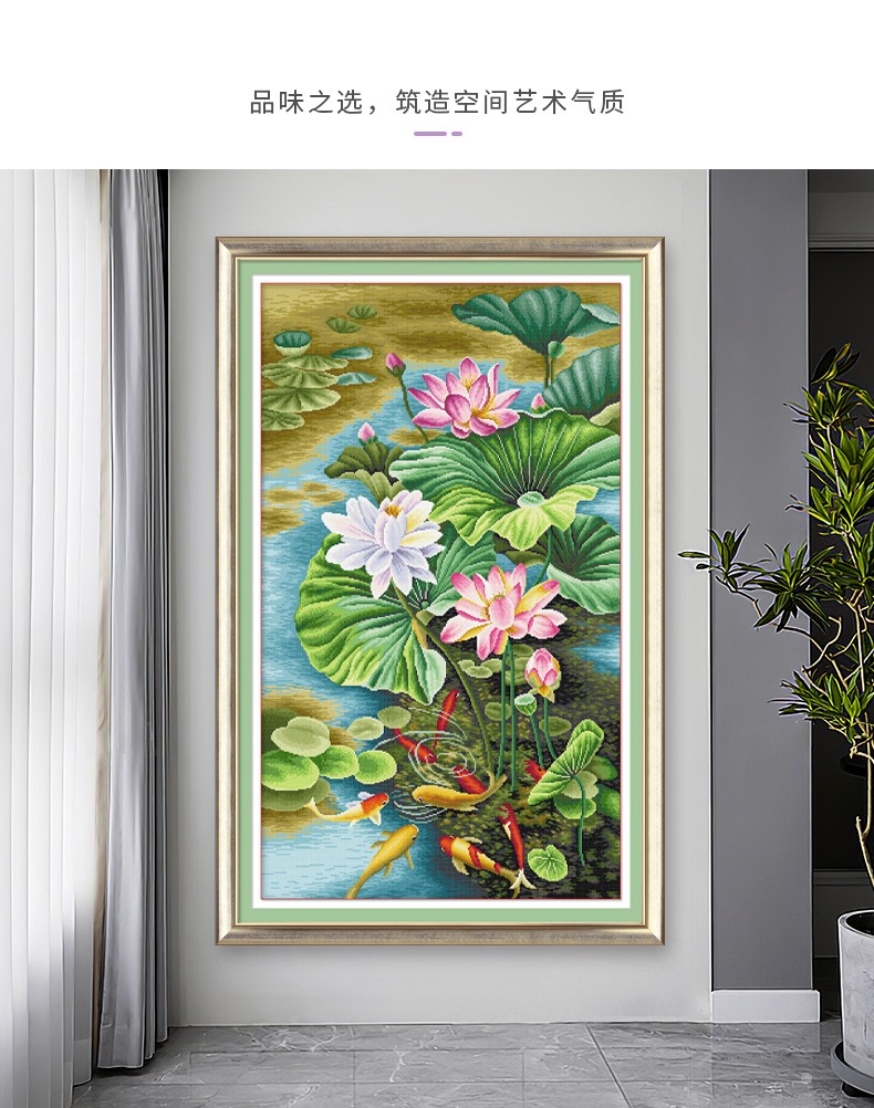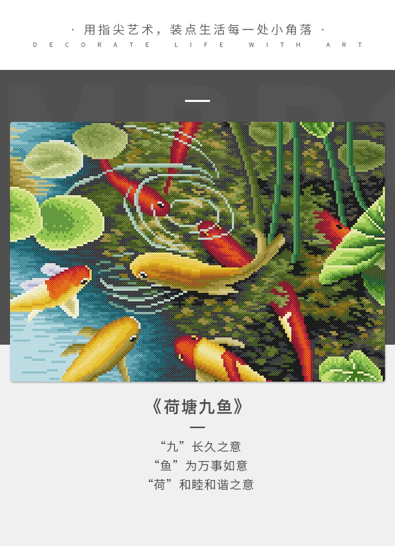 ks十字繡2023新款客廳玄關荷塘九魚掛畫線繡手工繡現代年年有余